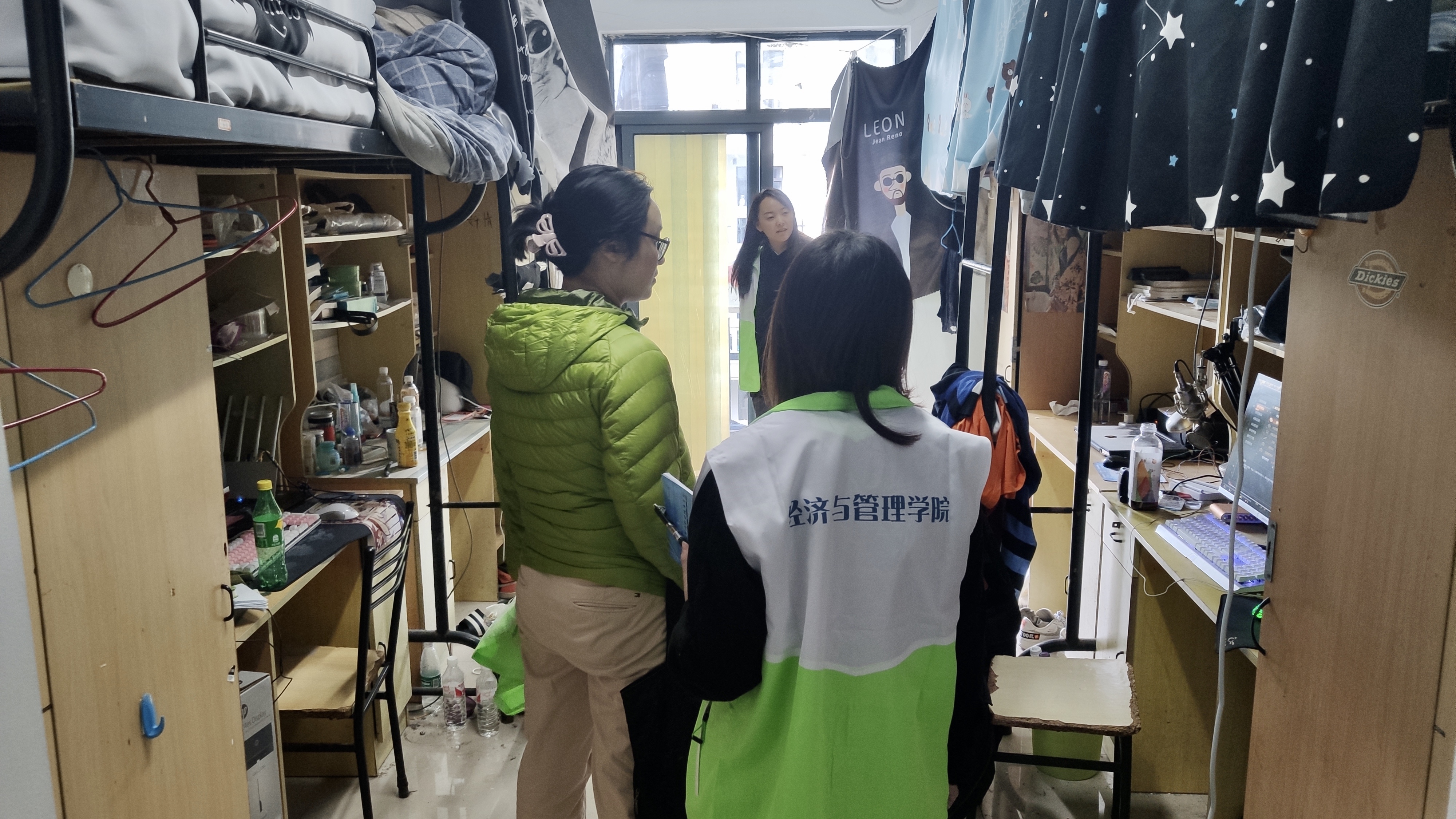 为切实发挥好共产党员的先锋模范作用,落实“不忘初心 牢记使命”主题教育要求,进一步了解同学们的生活情况,同时提高住宿生的安全意识,创建干净整洁、规范有序、文明守纪、管理科学的生活环境,促进广大学生养成自觉维护宿舍环境卫生的生活习惯,于2019年11月22日中午12:30在3号楼313会议室,经济与管理学院召集全体党员召开了动员会,会议由党总支副书记郭骏老师主持。随后对我院部分寝室开展了安全督查。我院开展党员教师深入学生宿舍安全主题教育,各支部全体党员教师参加。两个支部的党员教师进行分组,就深入学生宿舍的事项及内容进行安排部署,党员教师根据各自分工深入学生宿舍,询问和关心同学们在生活中存在的困难和不适应的地方,了解学生宿舍卫生及安全用电情况,重点提醒同学们注意宿舍用电安全,培养良好的生活习惯,并与学生交流学习和生活情况,向同学们送去了党支部的关怀。在深入学生宿舍的过程中党总支副书记郭骏谈到,同学们要通过集体生活树立正确的世界观、价值观和人生观,学会自律、学会生活、学会交往,营造健康向上的宿舍风气,使宿舍真正成为学生的和谐、文明、安全、卫生之家。