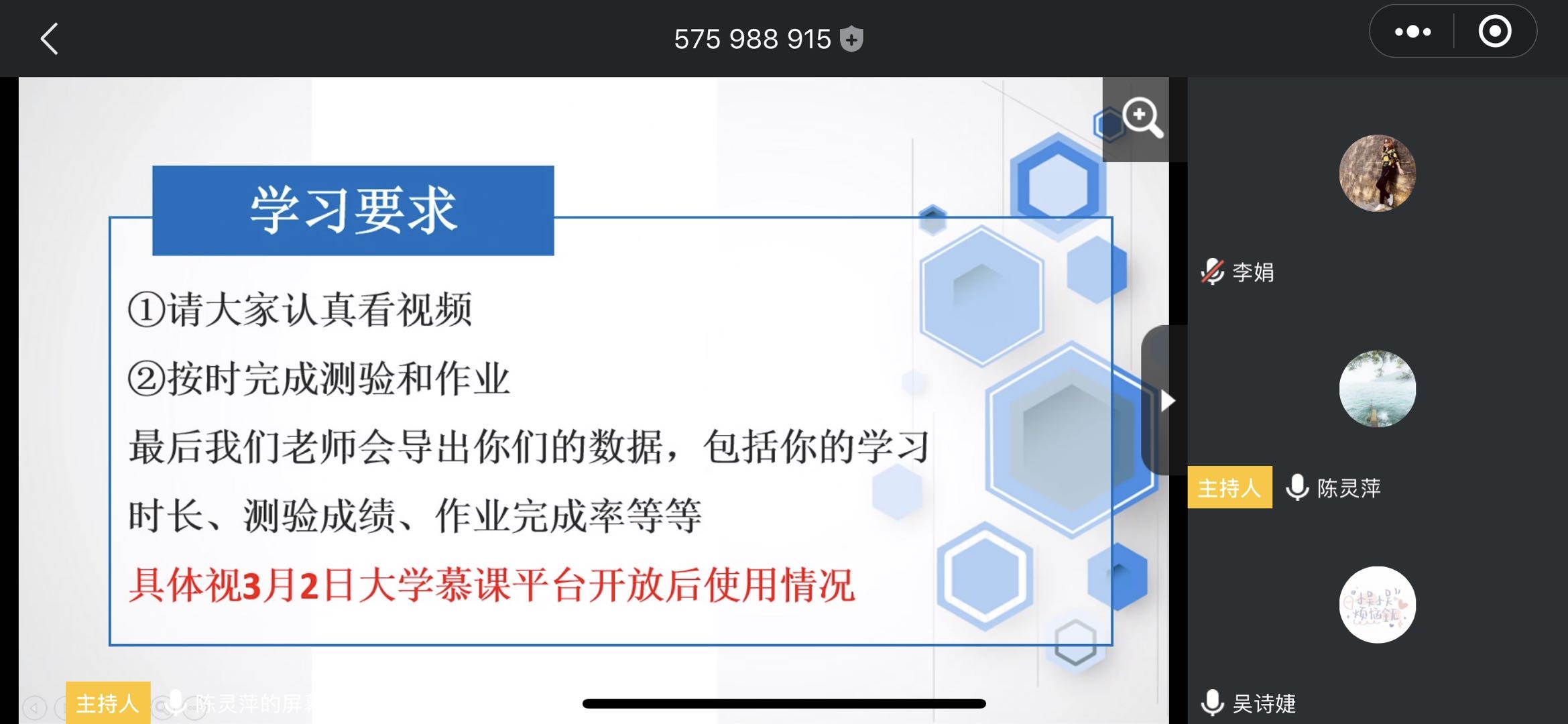 依托中国大学MOOC平台上的课程等各种网络线上资源,使用微信群,QQ群直播与群课堂、腾讯会议、腾讯课堂等多种平台方式开展教学活动,提出教学要求并解答了同学提出的疑问。