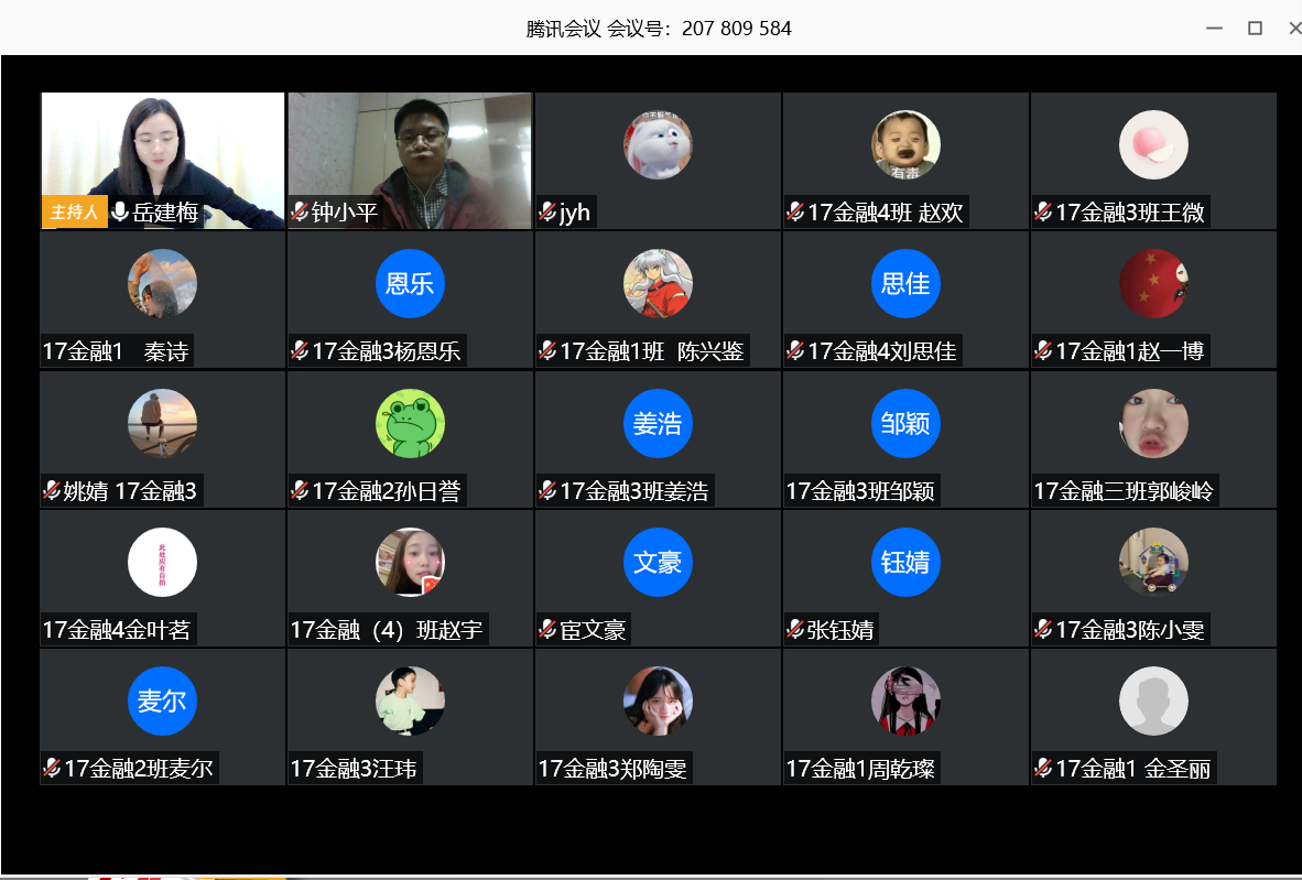 2020年4月19日星期日晚上7:00,经济与管理学院2020届金融管理就业动员会在线上召开。会议由辅导员岳建梅老师主持,参加本次会议的有经管学院副院长王殿安教授、副院长范海燕教授、院长助理杨慧老师、金融专业主任钟小平老师、全体金融管理专业老师及本专业全体学生。