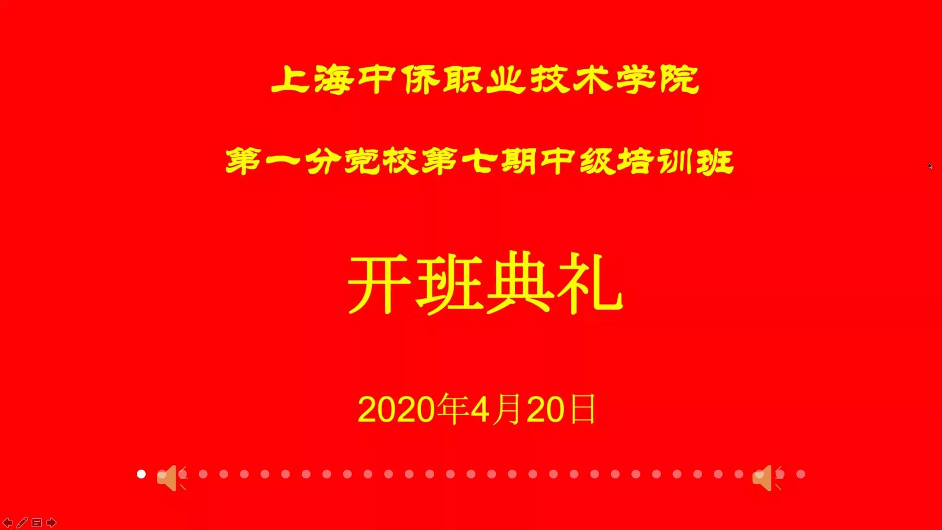 2020年4月20日15:45,上海中侨职业技术学院第一分党校第七期中级培训班开班典礼在腾讯会议平台举行。经济与管理学院党总支石成玉老师、第一党支部书记邵静老师、宣传委员郭晓平老师、组织委员韩雯倩老师以及中级培训班的全体中党学生共同参与了会议。会议由邵静老师主持。