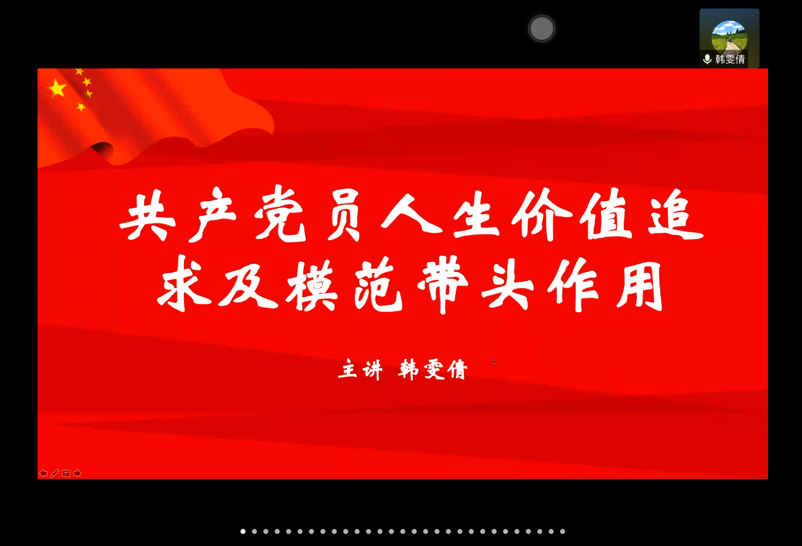4月29日18:00,上海中侨职业技术学院(本科)第一分党校第七期中级党校第四讲在以线上的形式在腾讯会议APP举行。经管学院韩雯倩老师给全体中党学院上了一节以“共产党员人生价值追求及模范带头作用”为主题的党课。