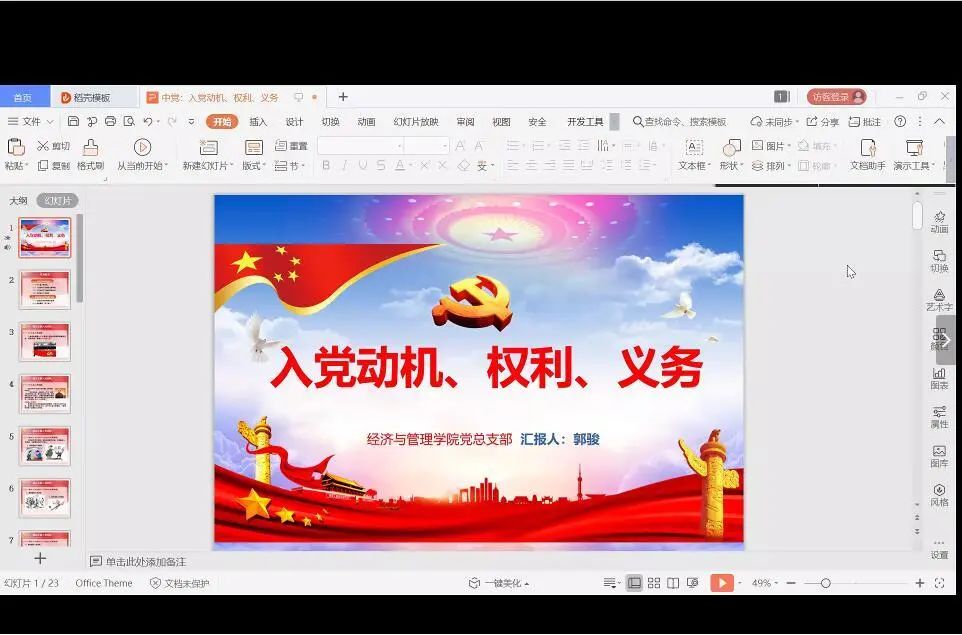 他举出抗疫期间,奋不顾身的共产党员的例子,深刻的告诉我们,党员的义务和权力相等、想成为一名党员,首先要做到一个好的人,一个可以去帮助他人的人,只有这样才能为国家,社会做出更多的贡献。