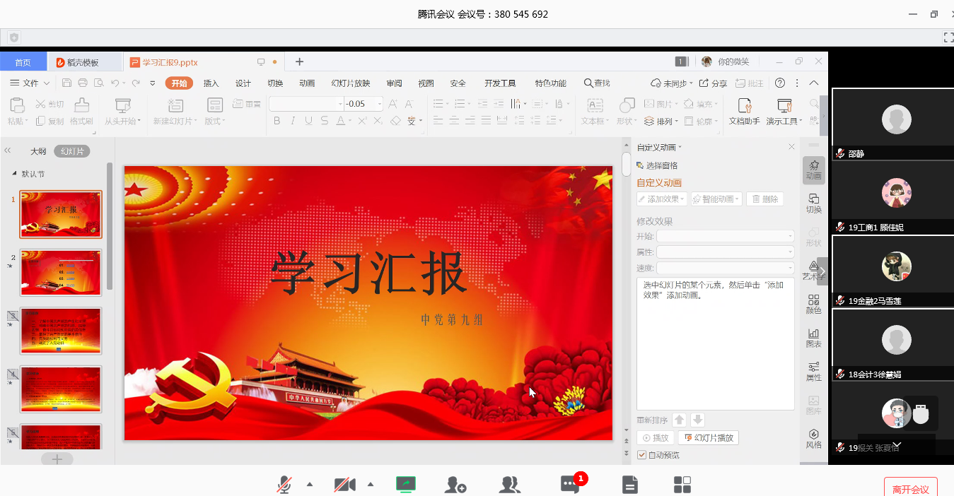 2020年5月6日19:00,上海中侨职业技术学院第一分党校第七期中级培训班小组汇报在腾讯会议平台举行。经济与管理学院党总支书记邵静老师、宣传委员郭晓平老师以及中级培训班的全体中党学生共同参与了会议。会议由邵静老师主持。