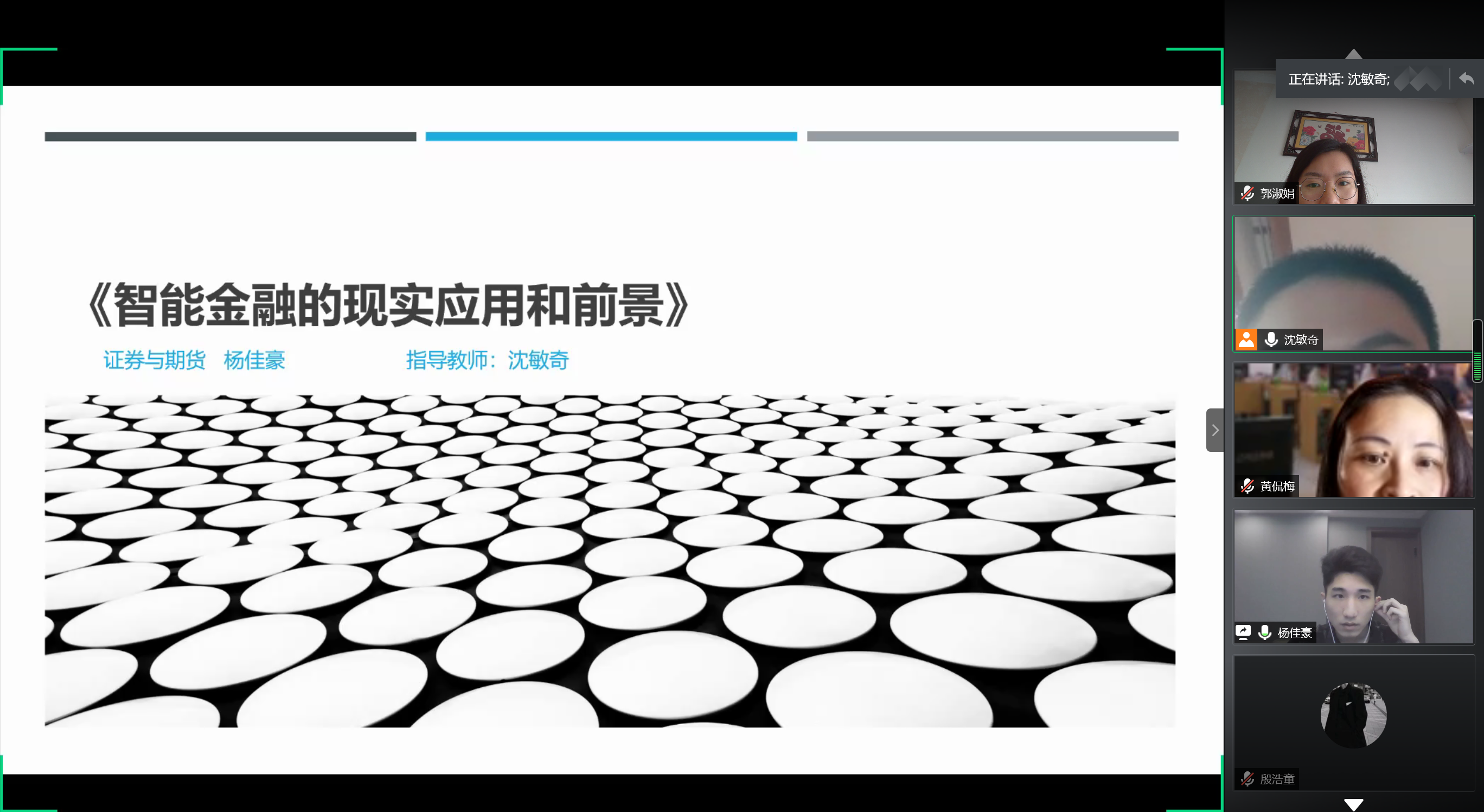 为保障师生的健康安全,使毕业生顺利毕业就业,2020年5月15日,17级证券与期货专业开展毕业论文答辩,此次使用腾讯会议这一互联网平台开展“云答辩”,本次答辩会议由沈敏奇老师主持,答辩组长黄侃梅老师和组员郭淑娟老师参加。