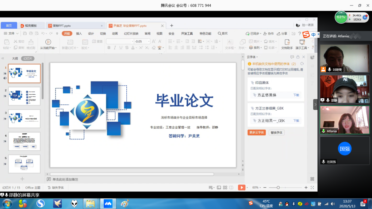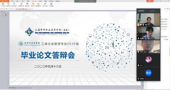 5月13日-15日,工商管理专业利用腾讯会议举办2020届学生毕业论文线上答辩会。参加本次答辩会的共有来自工商管理专业17级1、2班的94位同学,由于学生总人数较多,本次毕业论文答辩会分3个小组,分别利用3个半天举行,共有9位老师参与了本次答辩会工作。