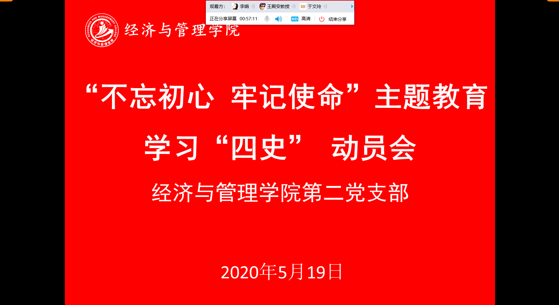 经济与管理学院第二党支部开展 “不忘初心 牢记使命”主题教育学习“四史”动员会