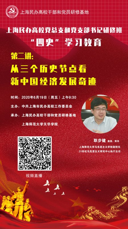 为进一步贯彻习近平总书记关于加强“四史”学习的要求,按照学校党委的部署,2020年6月19日上午9点,经济与管理学院第一党支部开展第六次“四史”主题学习活动,组织教师党员共同观看耿步健教授主讲的“从三个历史节点看新中国经济发展奇迹”主题讲座并进行了学习研讨和交流。