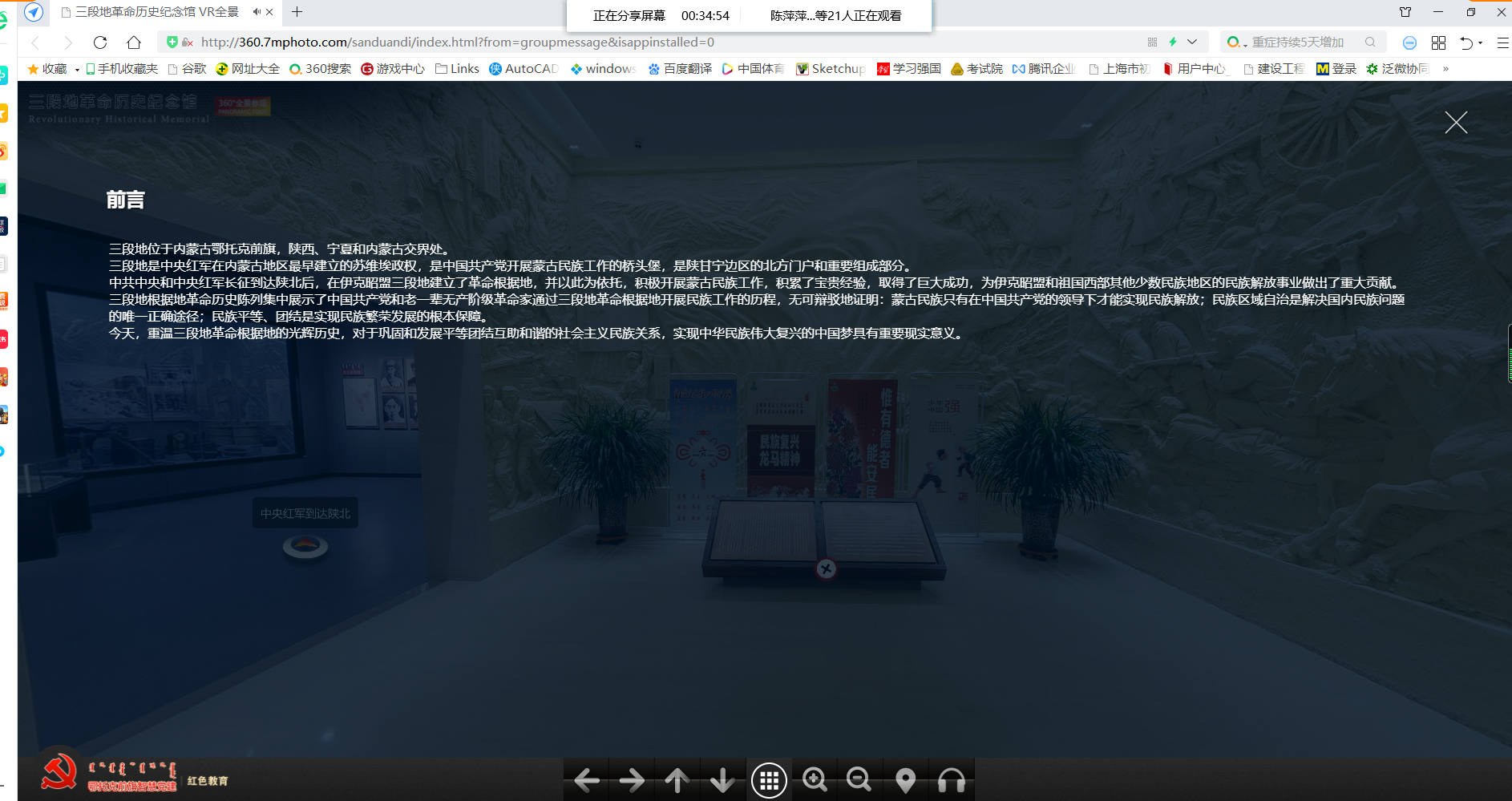刘玉柱老师说党支部组织党员教师观看了VR虚拟三段地革命历史纪念馆,参观结束后,感慨万分。纪念馆以“草原深处的统战记忆”为教学主题,集中展示李维汉、乌兰夫、习仲勋、周仁山等中国共产党民族工作领导人在这里工作、战斗的光辉足迹,引育后人铭记历史。是对广大党员干部、青少年学生开展爱国主义、革命传统和民族团结教育的集训地。这里的一切都这样的雄伟,有种踮起脚尖触摸到幸福的感觉。因为这些革命先辈的付出亦或牺牲,换来了我们的幸福。我们一定要再接再厉,勇往直前,努力奋斗,创造美好明天。