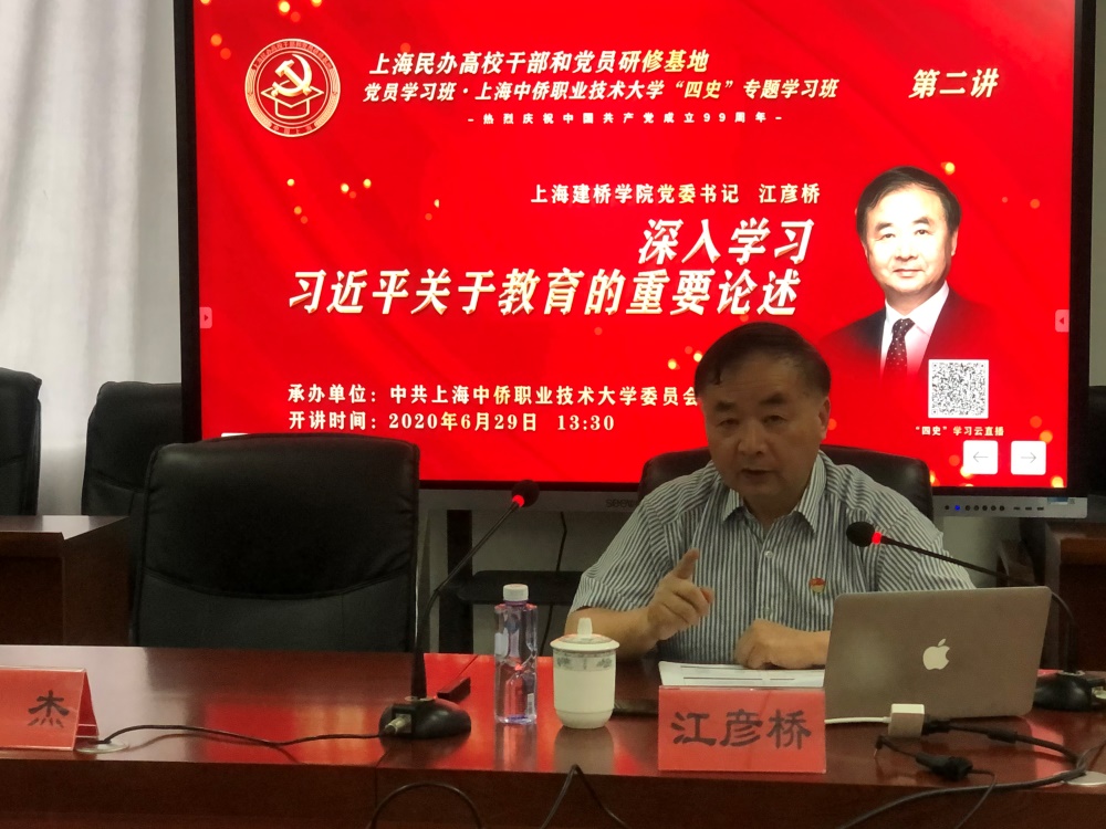 江彦桥教授以深入学习领会习近平关于教育的重要论述为主题,系统解读了习近平总书记关于教育的重要论述的思想内涵、理论主张、精神实质和实践要求。习近平总书记关于教育的重要论述,系统回答了一系列方向性、全局性、战略性重大问题,标志着我们党对教育规律的认识达到了新高度,为推进新时代教育改革发展提供了强大思想武器。江教授结合今年的疫情防控谈到,加强党对教育工作的全面领导是办好教育的根本保证。中国特色社会主义最本质的特征是中国共产党领导,中国特色社会主义制度的最大优势是中国共产党领导,党是最高政治领导力量。