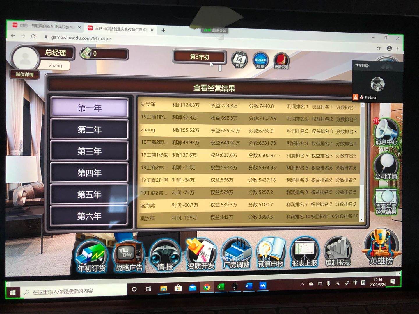 2020年6月22日-6月30日,工商管理专业通过腾讯会议+约创平台的模式顺利开展了2019级ERP沙盘模拟经营实训。