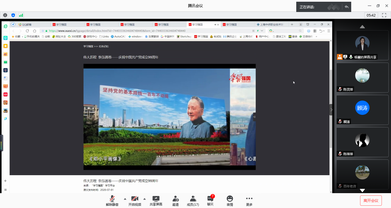 2020年7月1日经济与管理学院第二党支部开展“七一”党的生日、“重温党的革命基地,重温党的誓词”、“四史”主题教育,会议由经管学院第二党支部书记杨慧老师主持。