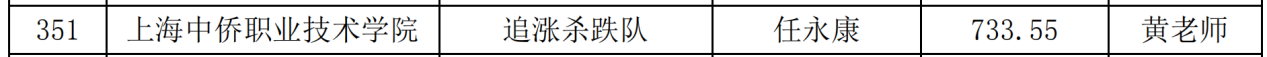 决赛阶段为6月9日-7月8日,根据虚拟交易所线上交易的团队平均操作分和个人操作分排名,评出团队及个人一、二、三等奖。证券与期货专业在进入决赛的3支队伍中,金旭东老师指导的队伍,赚钱组最终获得团队三等奖,赚钱组的同学分别有:李洋平、樊芹、吴钰静、沈文瑶、唐妍、张鸿沣。黄老师指导的18证券任永康同学在投资策略组中以351名的成绩获得个人三等奖。