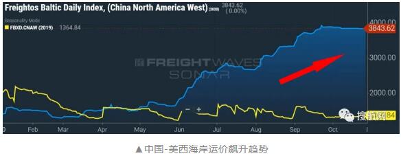 自2020年9月中旬以来,亚洲-美西海岸即期运价一直保持在3800-4000美元/FEU的历史高位,几乎是去年同期的三倍。尽管航运公司向跨太平洋航线注入了大量的运力,但似乎还不够。
