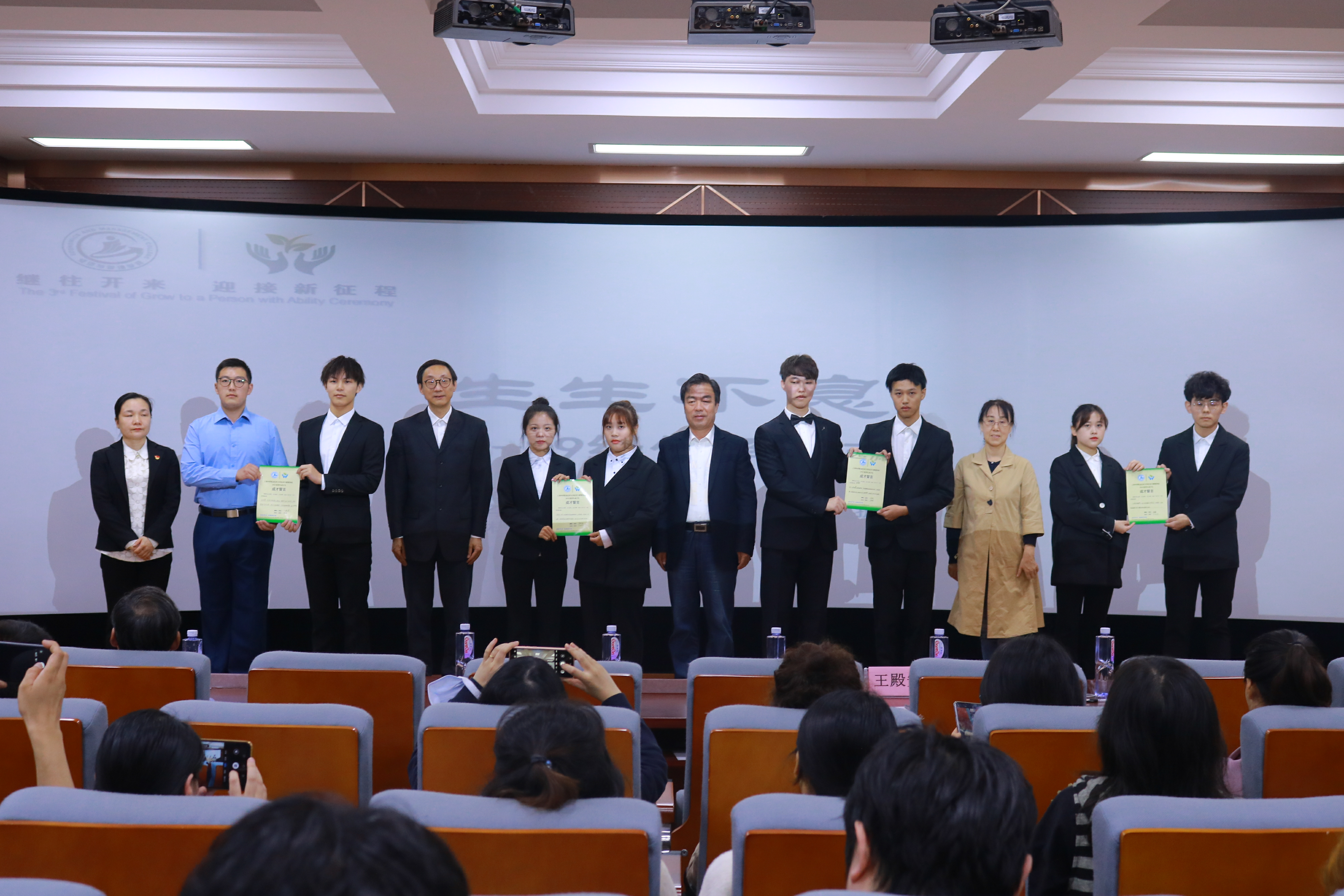 宣传片的结束,会场灯光亮起,观众们惊讶的发现舞台两侧分别站立着一名身穿防疫服的人。而就在此刻,一曲欢快的swagger响起,一组舞者在这两名“防疫人员”的守护下,无忧无虑的跳起街舞。舞蹈结束,两名“防疫人员”以标准士兵的步伐走到舞台中央,致以军礼。实际上,这两名演员都是18级退伍军人,他们以此向伟大的抗疫战士致敬。2020年以来,在抗击“新冠病毒”的壮烈斗争中,一批经管学院的战士们也冲锋在第一线,默默的付出个人的一份力量,但是正是他们的默默值守才给我们带来了安宁的生活。为此,本次仪式专门邀请了18金融2班的赵扬扬、18金融2班的姚天天、18工商1班的杨帆三位抗疫志愿者代表来到了现场。在全程热烈的掌声中,三位抗疫者代表带领全学院20多位志愿者代表进入会场,并带领全场观众齐唱由本届活动导演团队改编的歌曲《中侨学院的日子》。在一片手机荧光中,全体师生细细回顾着在中侨的点点滴滴。两年多来,18级学生在这里学习,在这里生活,在这里玩闹,在这里成长。他们从稚嫩走向成熟,成为掌握专业技能的高素质人才。如今,他们正在为自己在中侨的学习生涯画上圆满的句号。在他们中间,有的同学学业有成,有的同学收获了竞赛佳绩,有的同学把自己的青春与活力融入校园,有的同学在为社会服务中将中侨的美名远播四方。在仪式的第二部分“生生不息”,18国商的李嘉唯、18工商2班的杨浩楠同学、18金融1班的金文豪同学、18会计1班的曾振峰同学分别以优秀学习代表、竞赛团队代表、学生会代表、志愿者代表身份,汇报由2018级全体同学创造的丰硕成果,并登台准备接受成才礼。在庄重的背景音乐中,成才礼仪式正式开始。