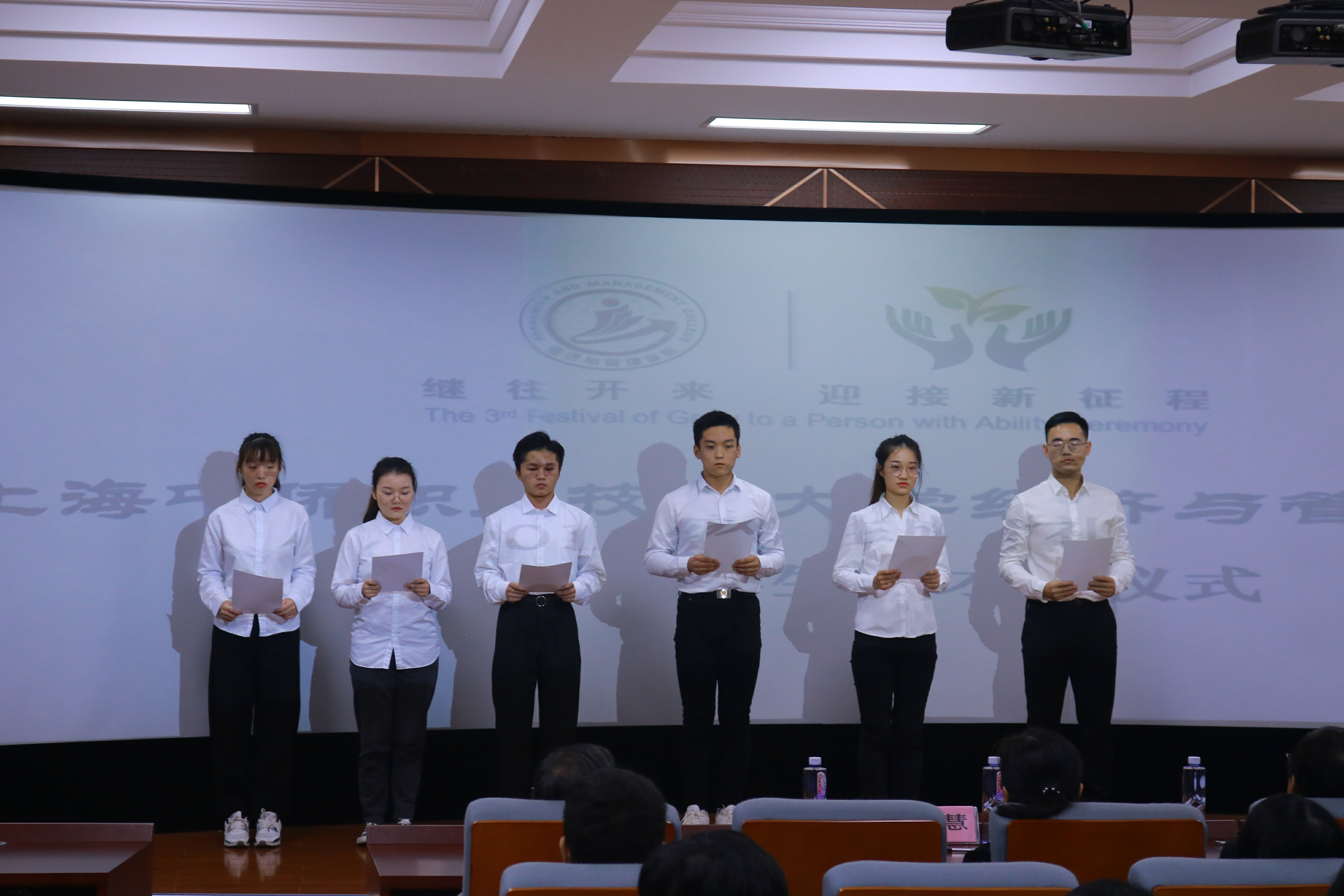 本次成才礼仪式分为正冠礼、训导礼、接纳礼三个环节。第一礼正冠礼,由请院党总支副书记杨慧老师执礼,她为每位同学整理衣领,希望同学们能够以饱满的精神踏实职场的征程;随后,第二礼训导礼,杨老师为每位同学送上一份“成才誓言卡”,希望各位同学仔细回顾过往,总结经验与教训,并面向未来,定下自己的成才誓言。学生们在杨老师的呵护与教导下,手捧“誓言卡”走到誓言签字台,思索片刻后在誓言卡上郑重的写下誓言,签上自己的名字,最后走向誓言台,等待第三礼的开始;进入第三礼接纳礼,张炳达教授、杨慧老师、王殿安教授、范海燕教授分别为接受四名学生代表的誓言卡,并在见证人处签下自己的名字,寓意见证这名同学宣誓成才的时刻。完成成才礼的学生代表再次回到舞台中央。之后,在主持人的邀请下,19工商1班的杨毅同学、19工商1班的徐翔同学、19工商1班的吴明杭同学、19金融1班的刘逸潇同学步入会场,走到四位18级学长身边,他们将作为19级传承人,完成18级与19级的誓言传承仪式。18级学生代表将自己刚完成成才礼的誓言卡递交于各自对应的19级传承人手中,19级传承人接受誓言卡,并代表19级学生宣誓要刻苦学习、奋发图强。最后,张炳达教授、杨慧老师、王殿安教授、范海燕教授上台与18、19级的8位学生代表合影。随着学生代表成才礼仪式的完成,各专业学生成才礼全面开始。来自工商、旅游、会计、报关、金融、证券、物流、国商八个专业的学生代表分四组参加了成才礼仪式。18级辅导员代表孟天翔老师为全体同学执正冠礼、训导礼;八大专业的专业主任分别为各组同学执接纳礼。成才礼毕,全体受礼学生齐聚舞台,杨慧老师为2018级学生送上祝福寄语。
