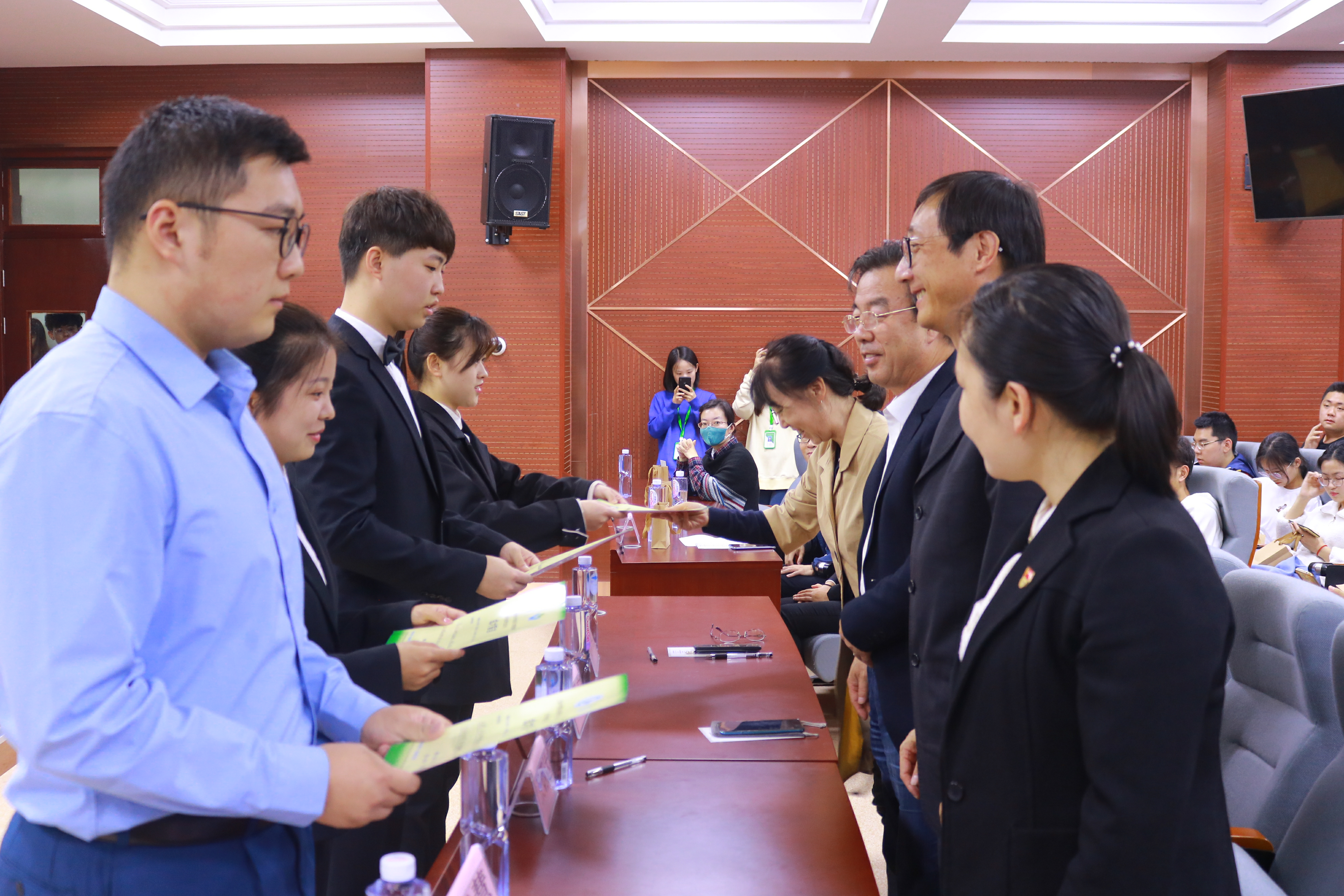 最后,全场齐唱《不说再见》。在合唱声中,2018级学生代表走下舞台,向2020级同学送上各自的誓言卡,送上学长们的一份嘱托。不说再见!我们还将见证各位同学真正的成长、成才,期盼各位同学衣锦返校!