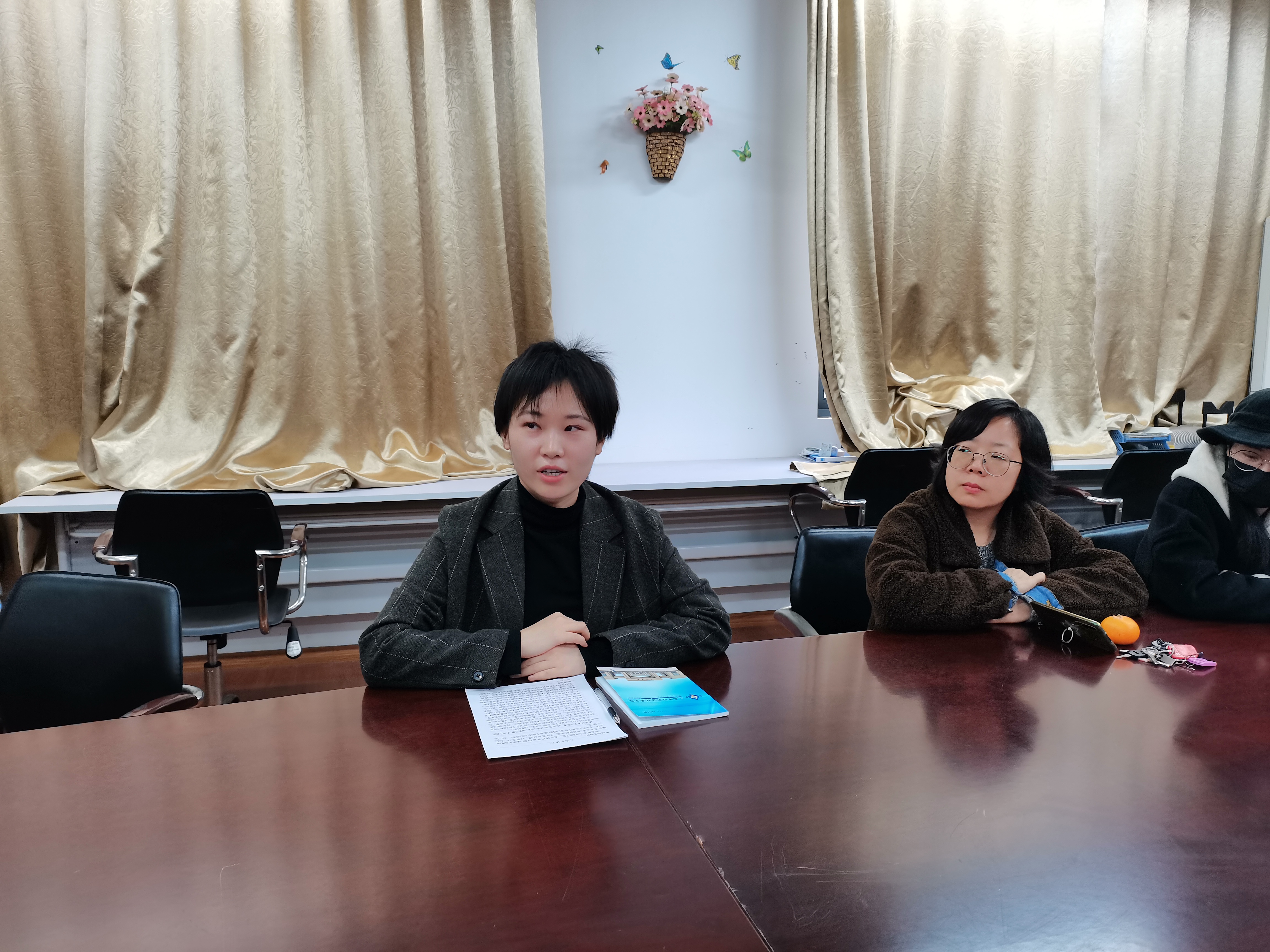 会议第四项,经管学院党总支副书记杨慧同志向大家介绍张倩倩同志在培养考察期思想上积极主动,认真学习马列主义毛泽东思想,工作上严谨勤奋,不仅完成本职工作,积极参加各种比赛,不计报酬,生活中乐于助人,与同事和睦相处。通过谈话和考察,以及党内外干部群众的座谈,张倩倩同志的入党动机端正。