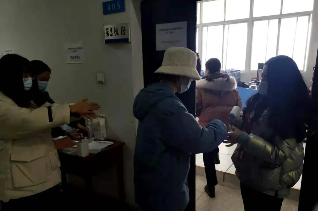 开考当天,所有考场全体考务人员提前到位,测量体温并登记。8点30分,考场外,考生在工作人员的引导下,保持1米间隔,经过体温测量、物品检查、身份信息核实、图像采集后,有序进入考场。