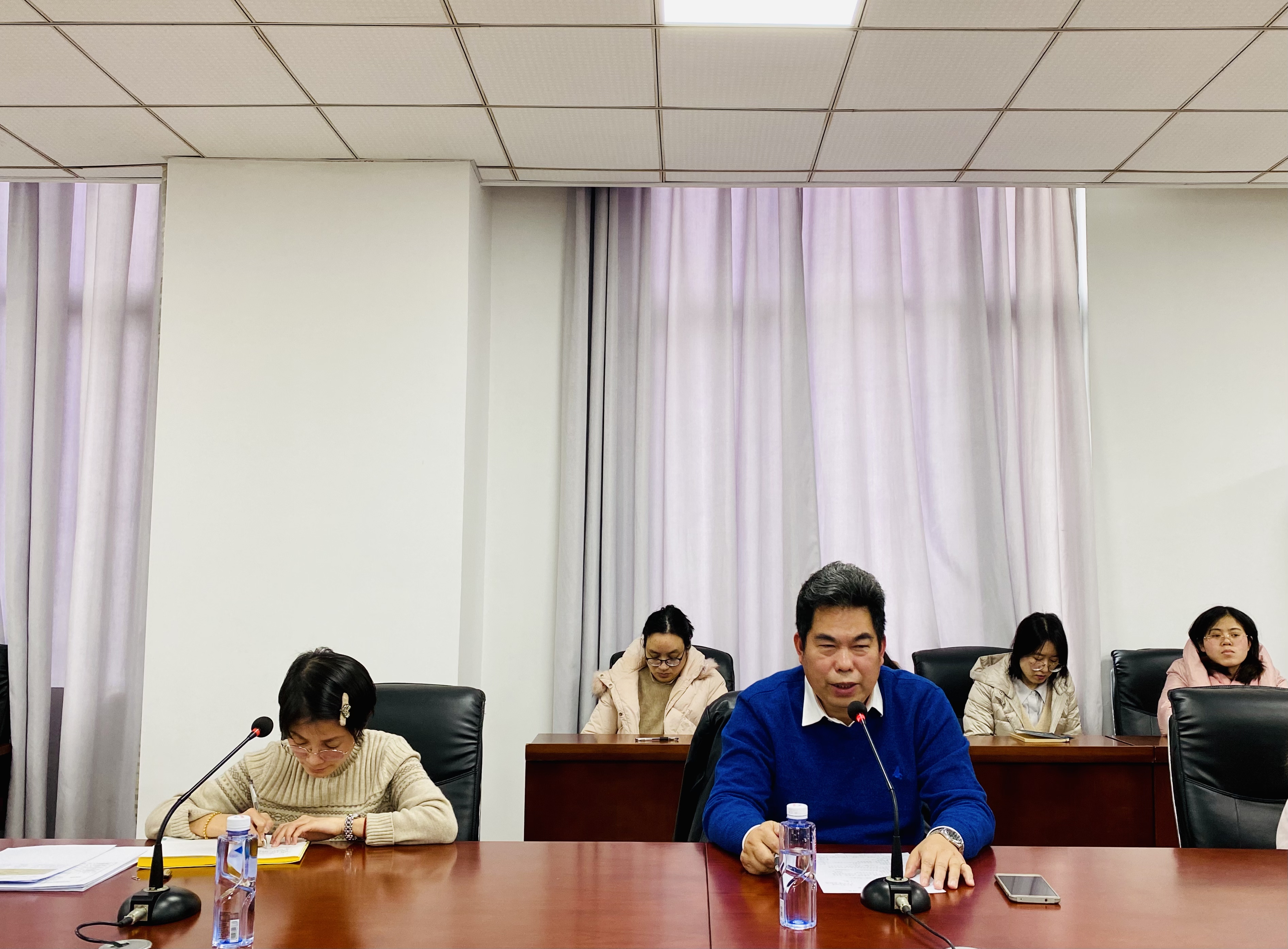 2021年1月4日周一下午12点半,经济与管理学院在图文信息楼108会议室召开经管学院中层干部述职大会,因为正值实训周,有部分教师在校外进行实训,所以会议分为腾讯会议线上和现场会议线下同步进行,会议由组织人事处刘霞副处长主持,校长陈晓斌教授,经管学院全体教师参会。