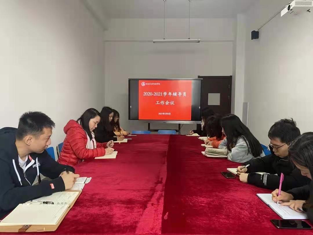 为扎实做好新学期学生返校工作,2021年3月5日12:00,经济与管理学院在4号楼203会议室召开新学期辅导员工作例会,党总支副书记杨慧老师及所有辅导员参会,会议由邵静老师主持。