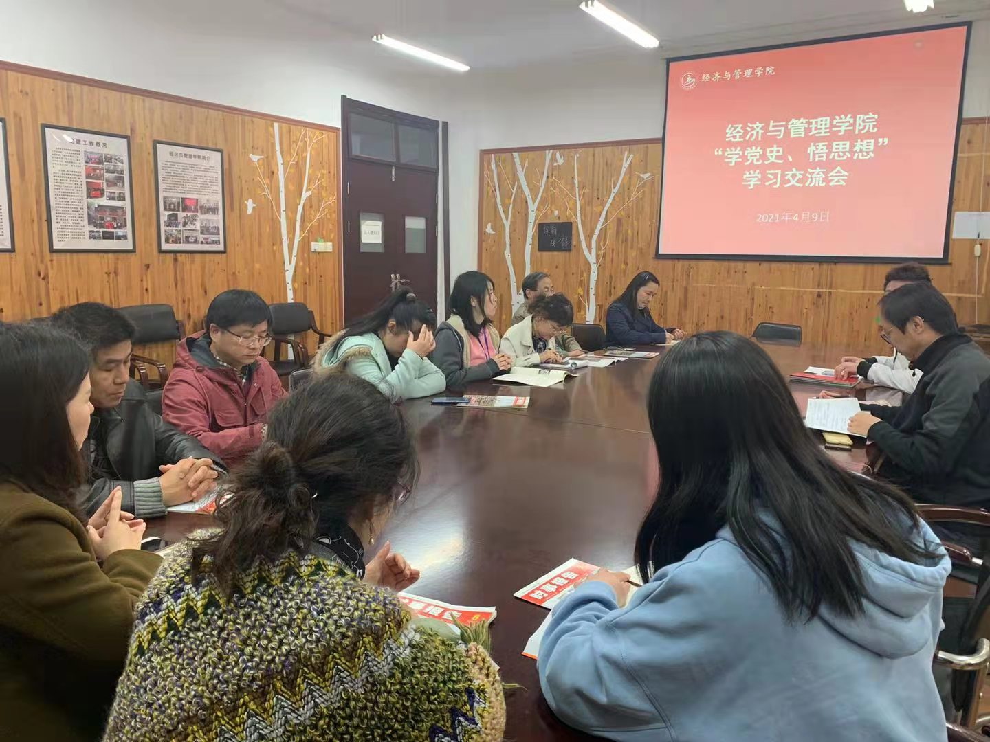4月9日下午,经济与管理学院举办了“学党史、悟思想”主题教育,以专业主任,学院中层党员干部为主开展党史学习,会议由党总支副书记杨慧老师主持,全体党员参加。