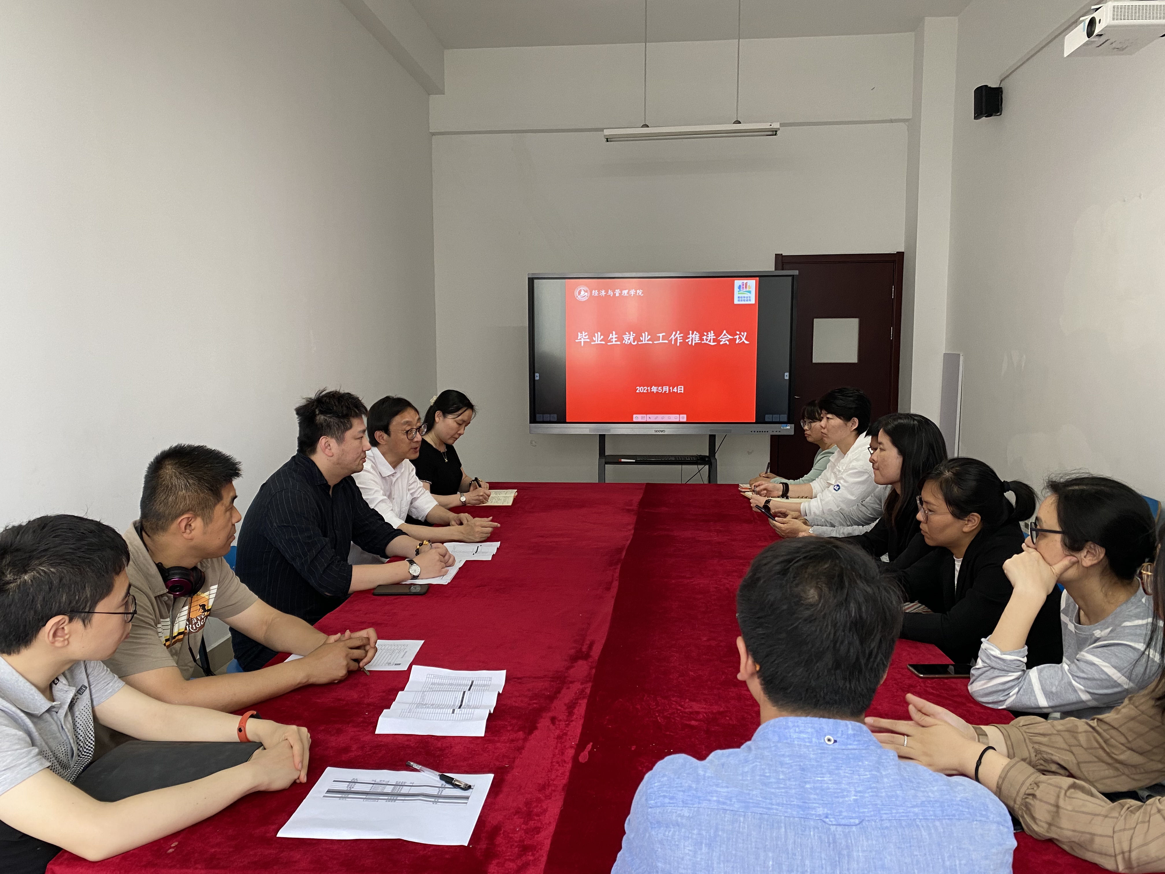 2021年5月14日12:00,经济与管理学院在4号楼203会议室召开毕业生就业工作推进会,学院院长张炳达教授、党总支副书记杨慧老师、郭骏老师及所有毕业班教师和辅导员参会,会议由郭骏老师主持。