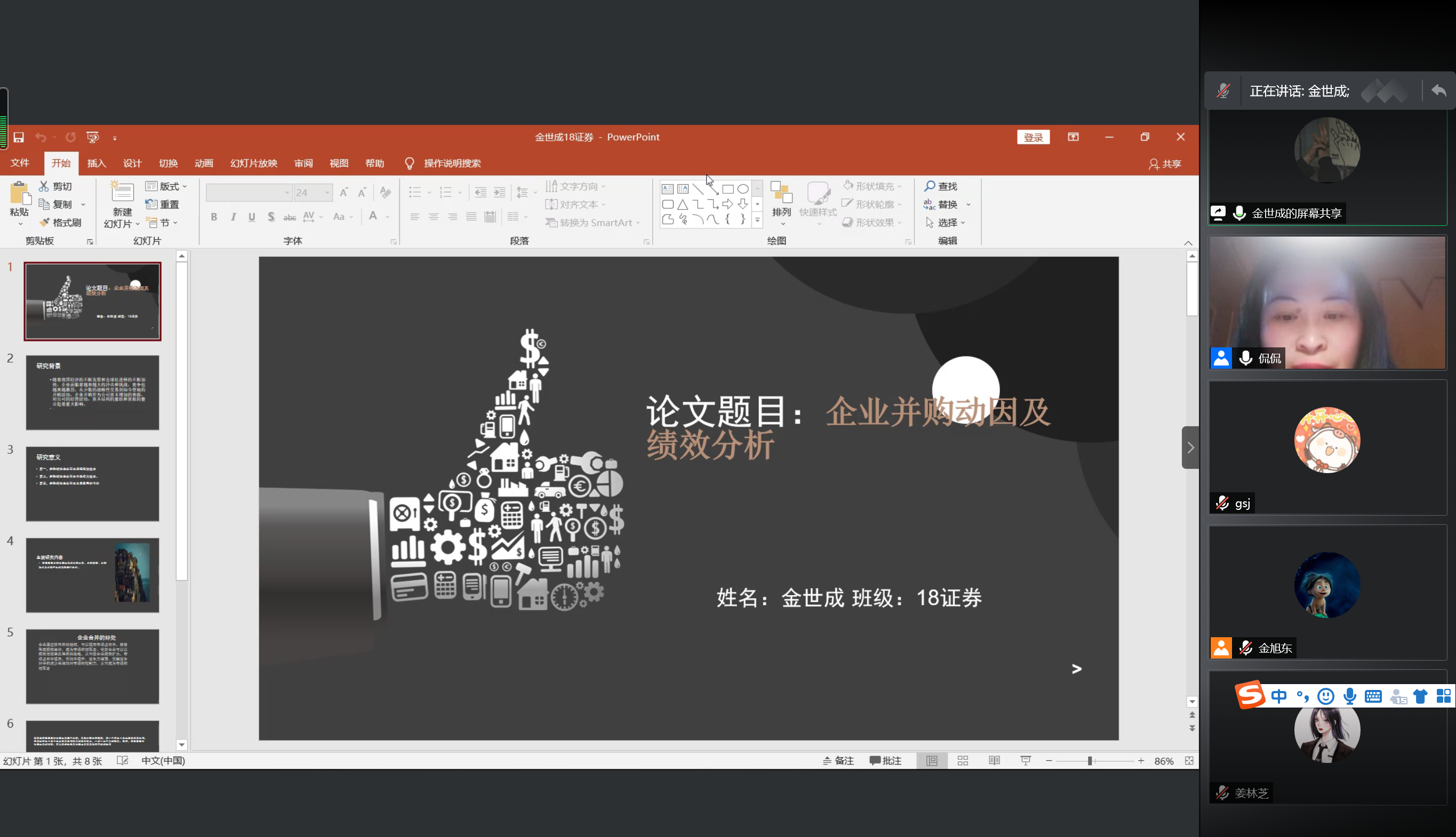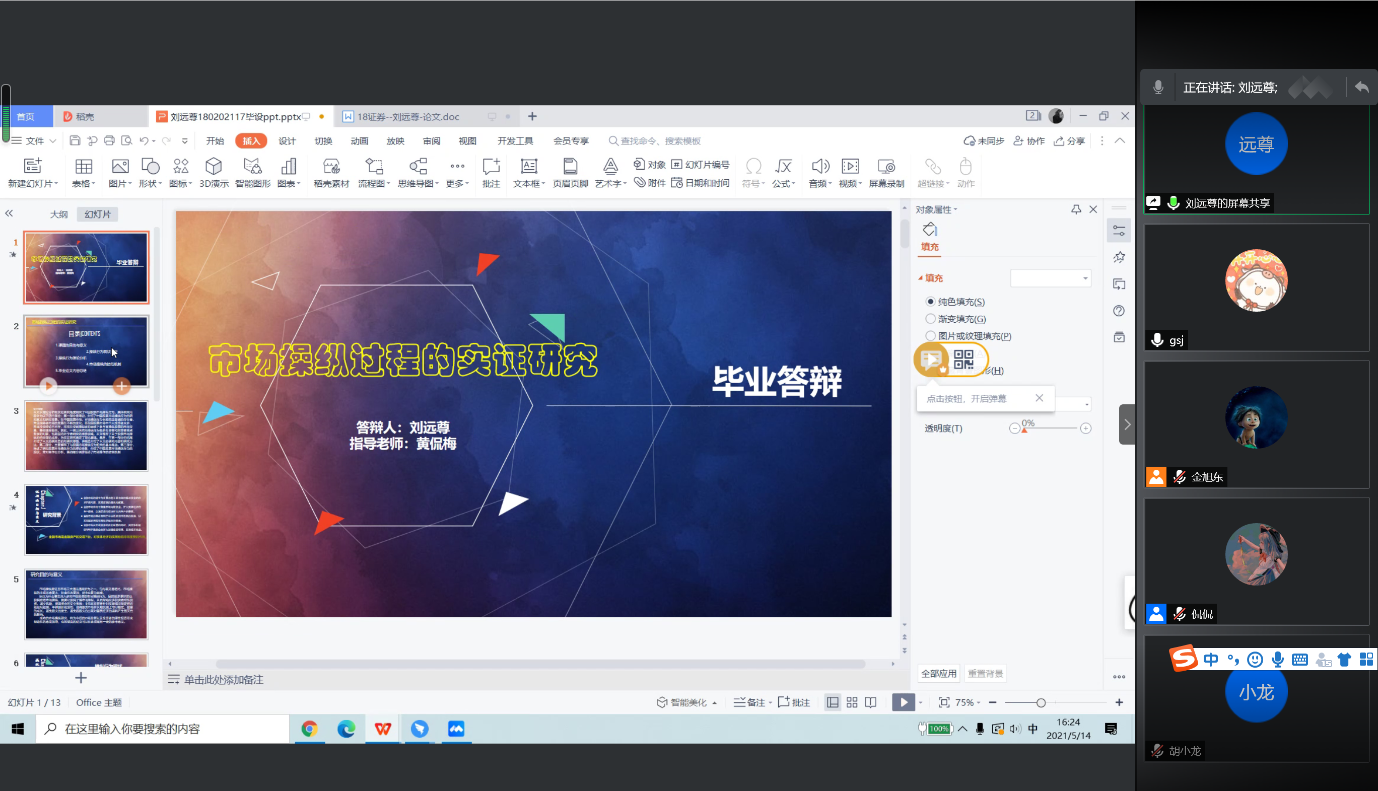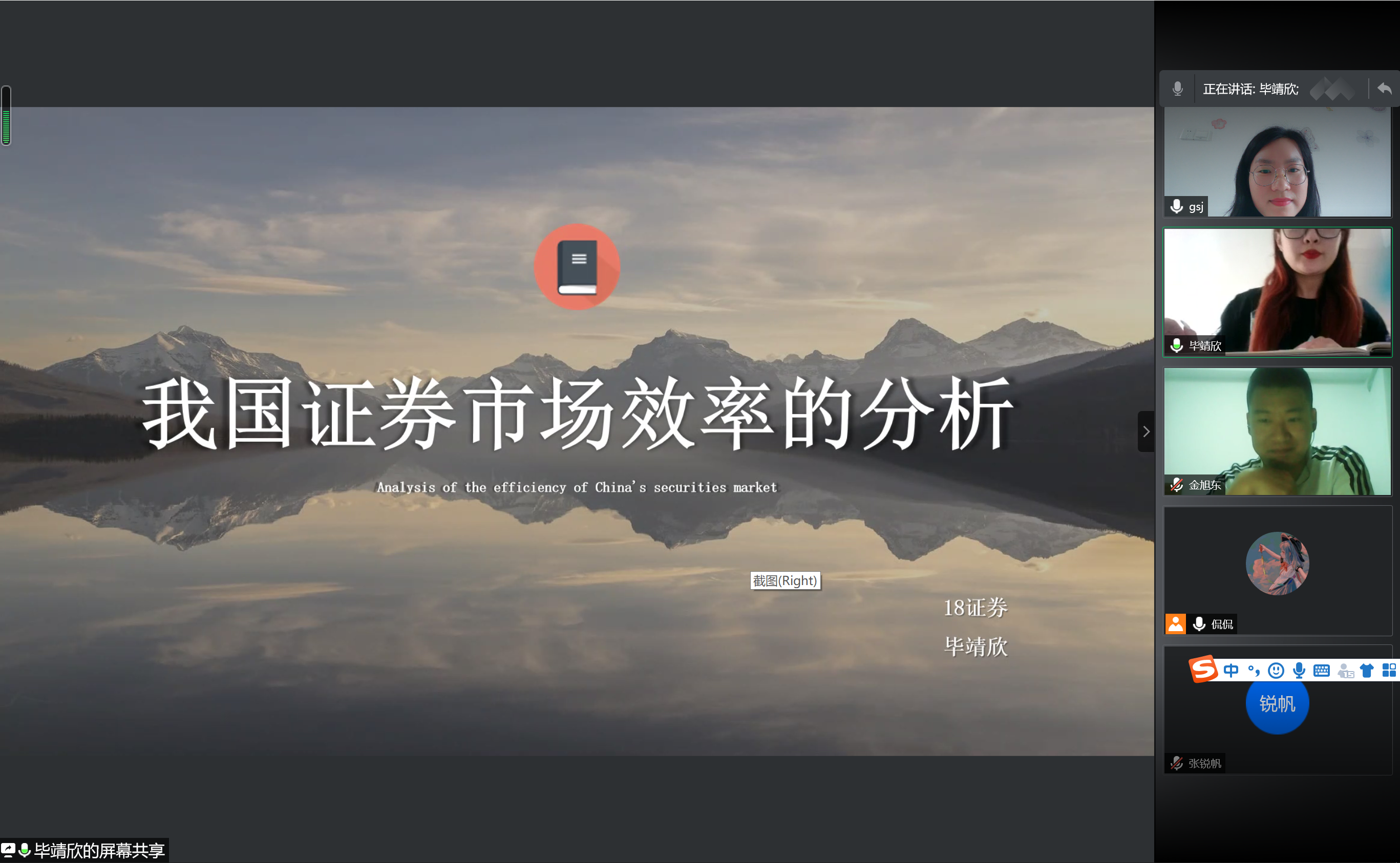 目前,全球疫情形势依然相当的严峻、复杂,“外防输入、内防反弹”压力持续增大,为了进一步做好新冠肺炎病毒的防控工作,在我国常态化疫情防控的基础上,结合我院要求,2021届证券与期货专业答辩于5月14日中午12:30采取腾讯会议线上答辩的方式进行。2021届证券与期货专业的毕业生参与了答辩,参加此次答辩会的老师有黄老师、金老师和郭老师。
