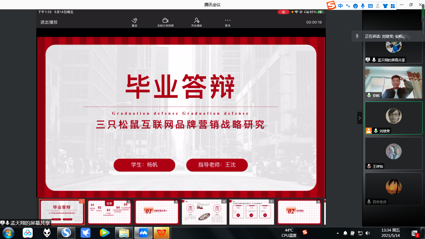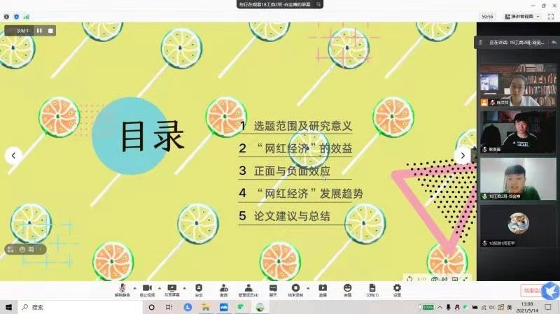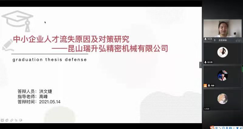 本次答辩会事先老师们做好了充分的准备工作,所以,虽然是线上答辩,但秩序井然,有条不紊。在答辩中,师生们进行了充分的沟通,增进了互相了解,也让同学们感觉到上了大学阶段最后一堂记忆深刻的课程。