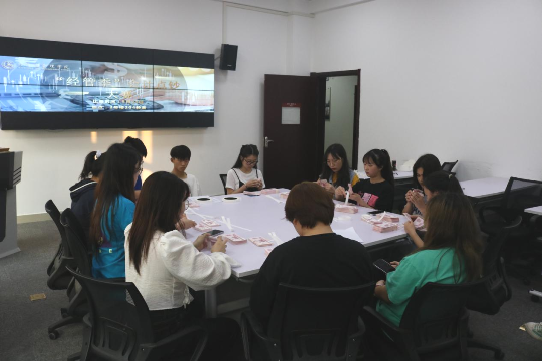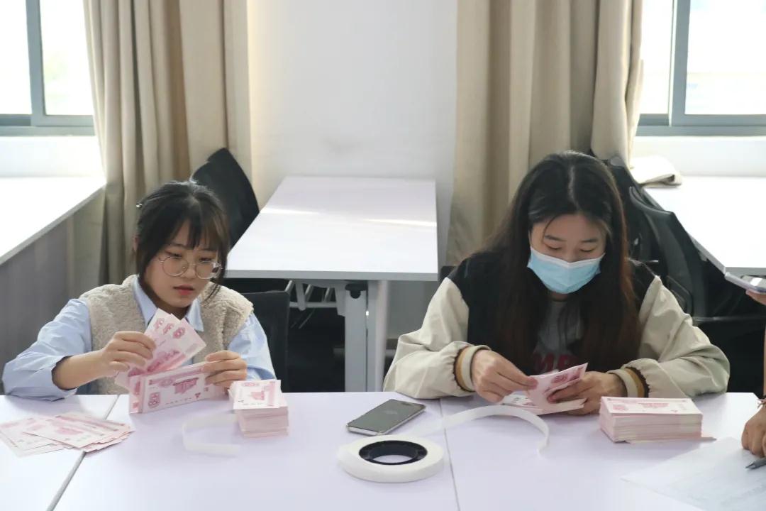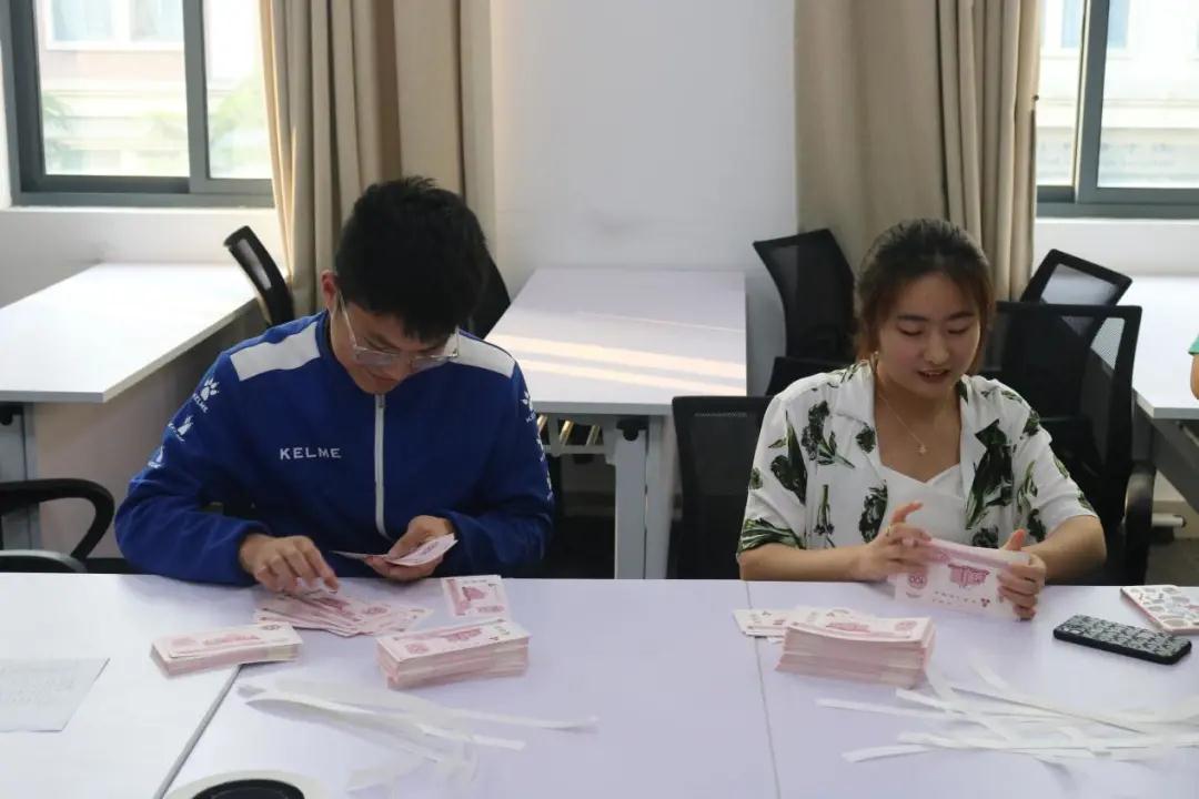 本次比赛共有28名同学参加,比赛分为单人赛和团体赛。单人赛用选手们认为最快的方法对桌面上约400张点钞券进行点钞并扎把。单人赛共分7组进行,4名同学同时开始点钞。由自律会工作人员负责验钞,并记录成绩。总时间快者为胜,取耗时最短的前10名同学进入第二轮。
