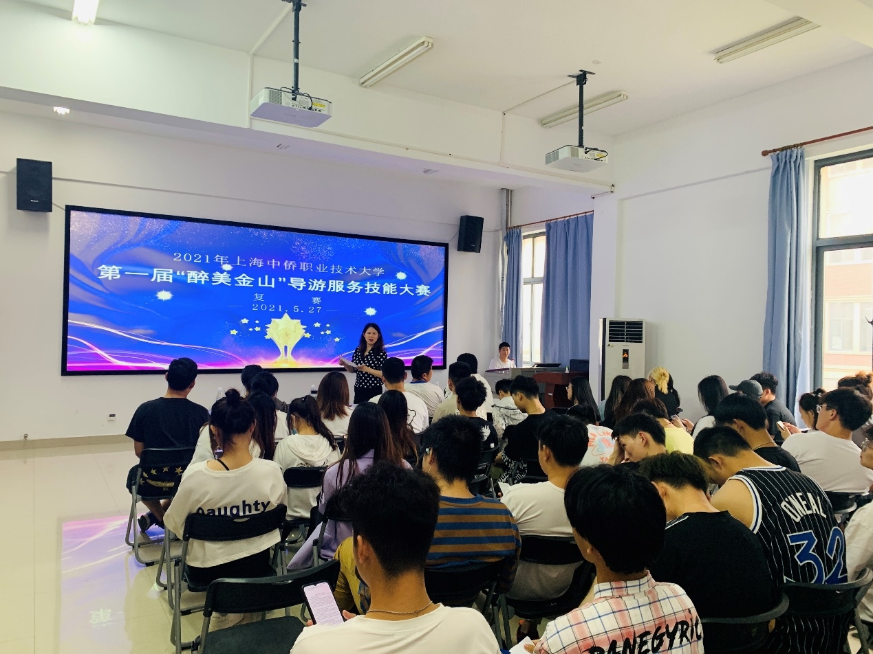 2021年5月27日,“醉美金山”导游服务技能大赛复赛顺利完赛,此次复赛由第一赛区、第二赛区、第三赛区三个赛区选拔出的十四支优秀的队伍进行十四进六的选拔赛。其中第一赛区旅游专业学生入围复赛六支队伍,第二赛区工商专业入围复赛六支队伍,第三赛区其他专业入围复赛两只支队伍。