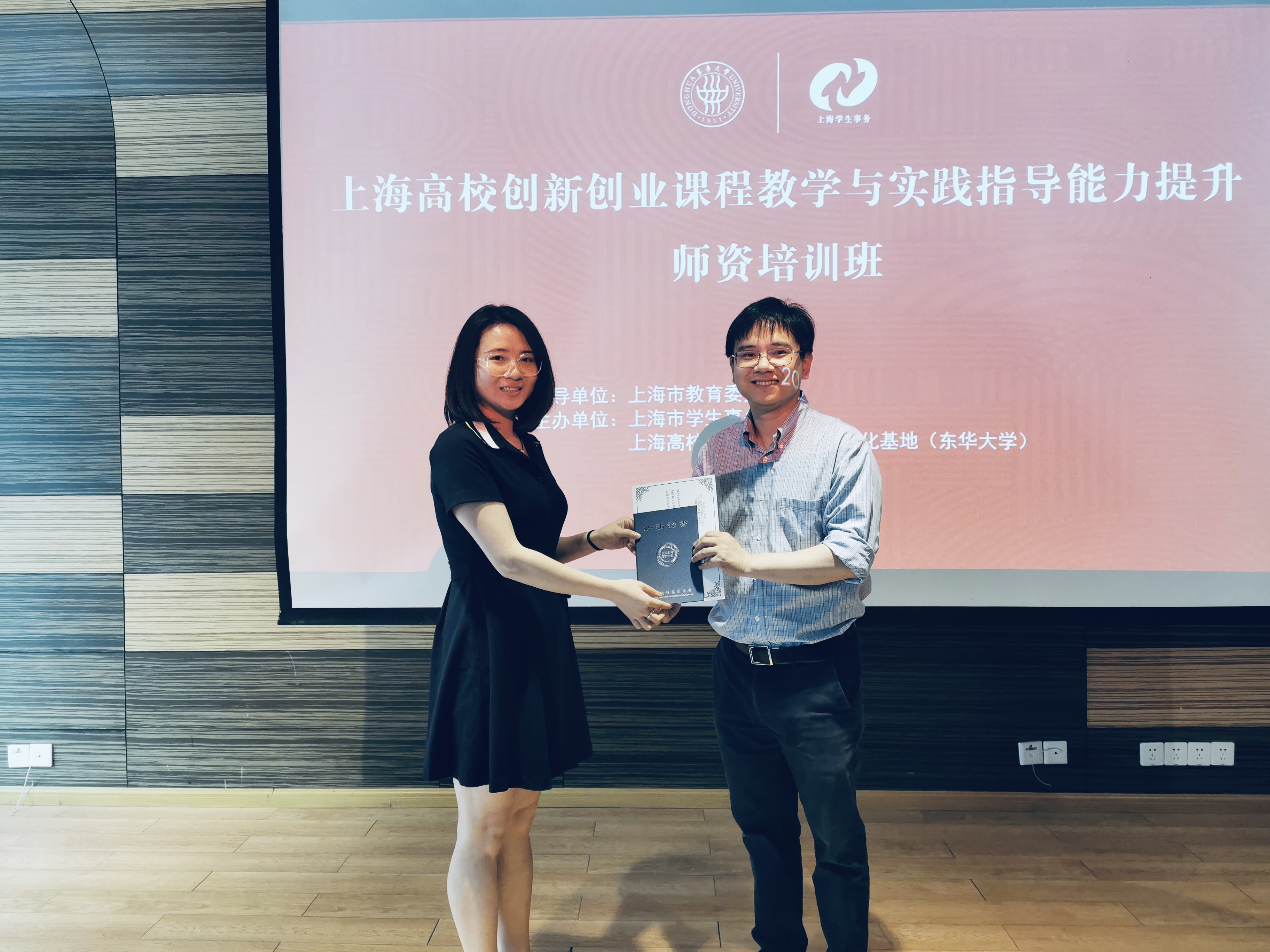 为深入贯彻落实全国教育大会精神和国家关于推动创新创业高质量发展系列文件精神,着力加强高校创新创业教育师资队伍建设,全面提升教师创新创业教学能力,提高“互联网+”创新创业大赛等赛事的教师指导服务水平, 5月27日至29日,经济与管理学院岳建梅老师,参加上海高校毕业生就业创业孵化基地(东华大学)联合举办的“2021年上海高校创新创业课程教学与实践指导能力提升师资培训班”。