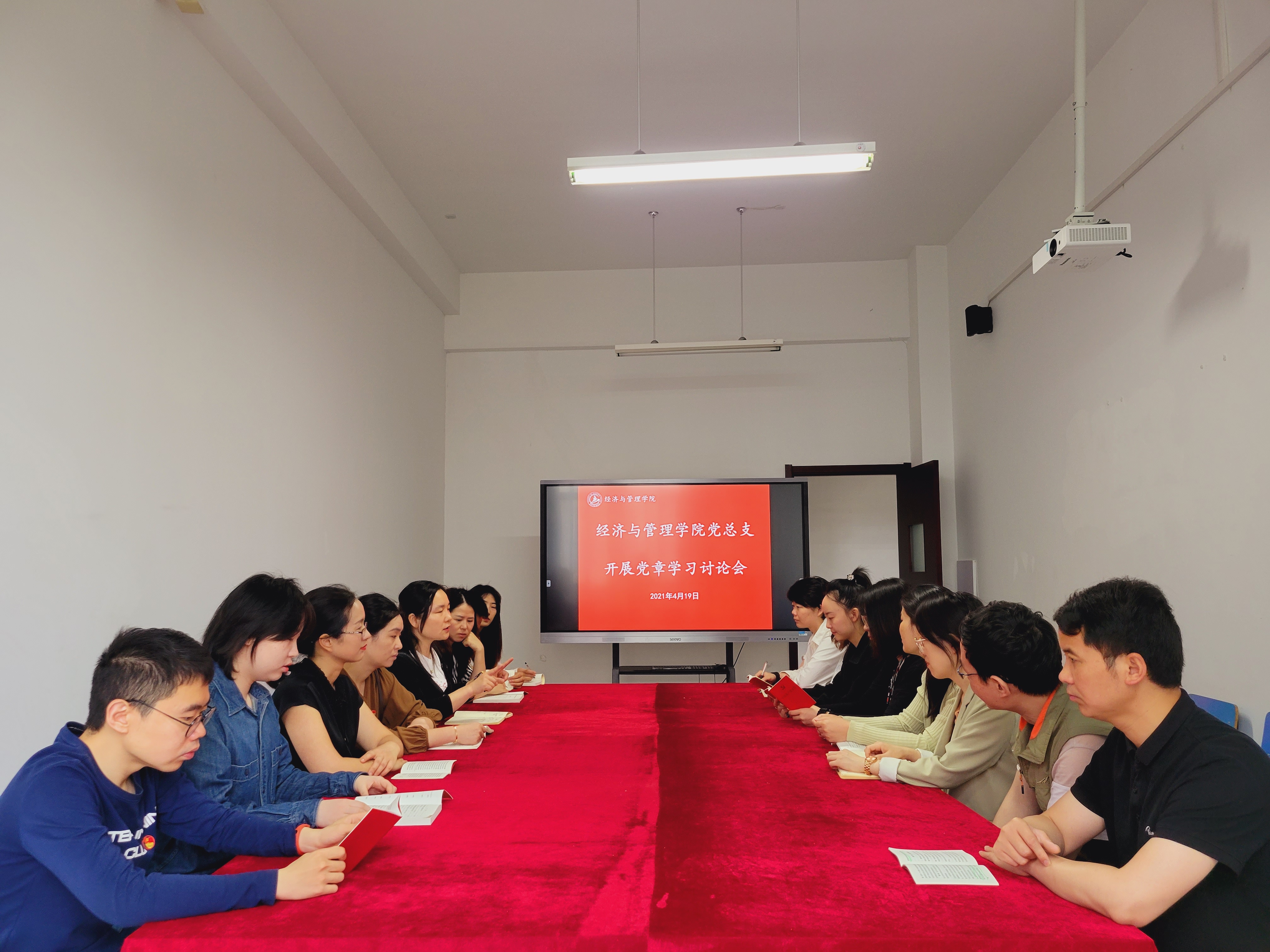 为纪念建党100周年,深刻理解党章新规定,争做优秀党员,2021年4月19日11:30,经济与管理学院党总支组织教师党员共同学习党章,经管学院全体党员教师共同参会,会议由党总支副书记杨慧老师主持。