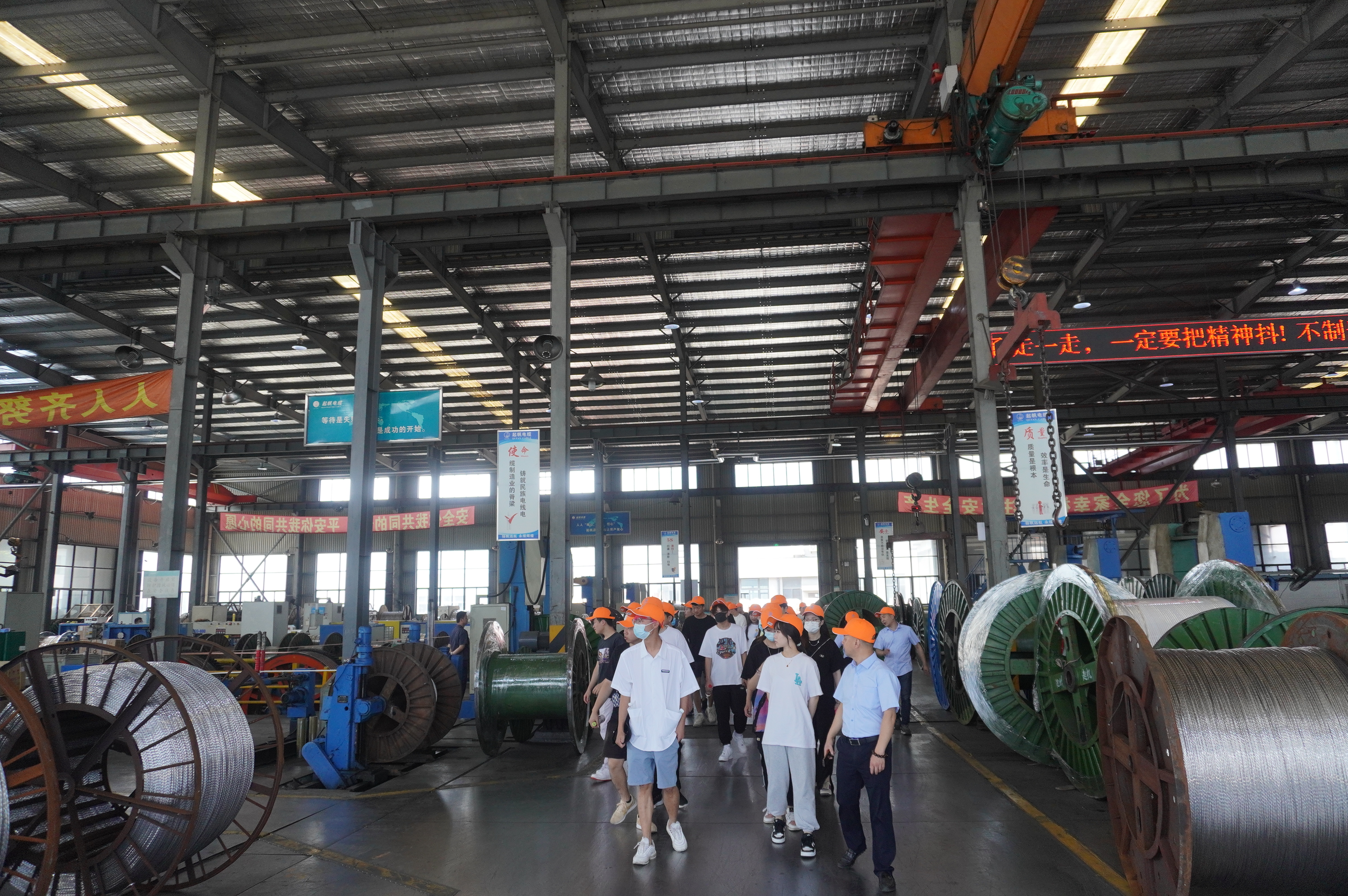 在参观过程中,起帆电缆公司领导及高级技工讲解了公司的发展历程、企业文化、企业产品及企业愿景等情况。起帆电缆是集研发、生产、销售为一体的业内高端电线电缆企业之一,公司成立于1994年,总部坐落于上海金山区,紧邻国家级上海松江出口加工区。公司始终秉承“质量、诚信、创新、人本、环保、品牌”宗旨,产品广泛应用于市政、水利、电力钢铁、煤矿、石油、化工、建筑、地铁、高铁、机场等领域,目前产品已遍布全国30多个省市和地区、20多个国家及地区。注册资金4.058亿元,现有上海、池州、宜昌三个厂区,占地面积1200多亩,员工3000多名,年生产能力超百亿。未来公司的规模将进一步扩张,员工数将翻一番。