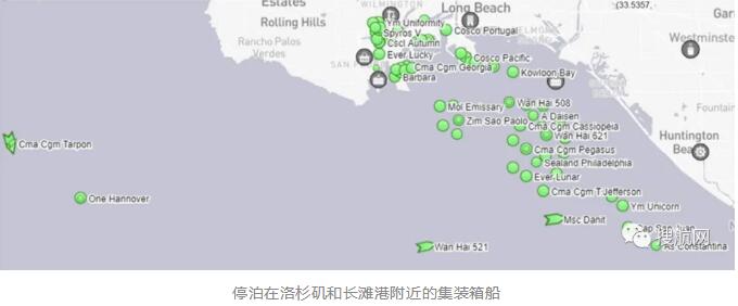 所有常规锚地和应急锚地都已满员,迫使多出来的船舶在指定区域漂泊,截至周日,有五艘集装箱船在圣卡塔利娜岛附近漂泊。