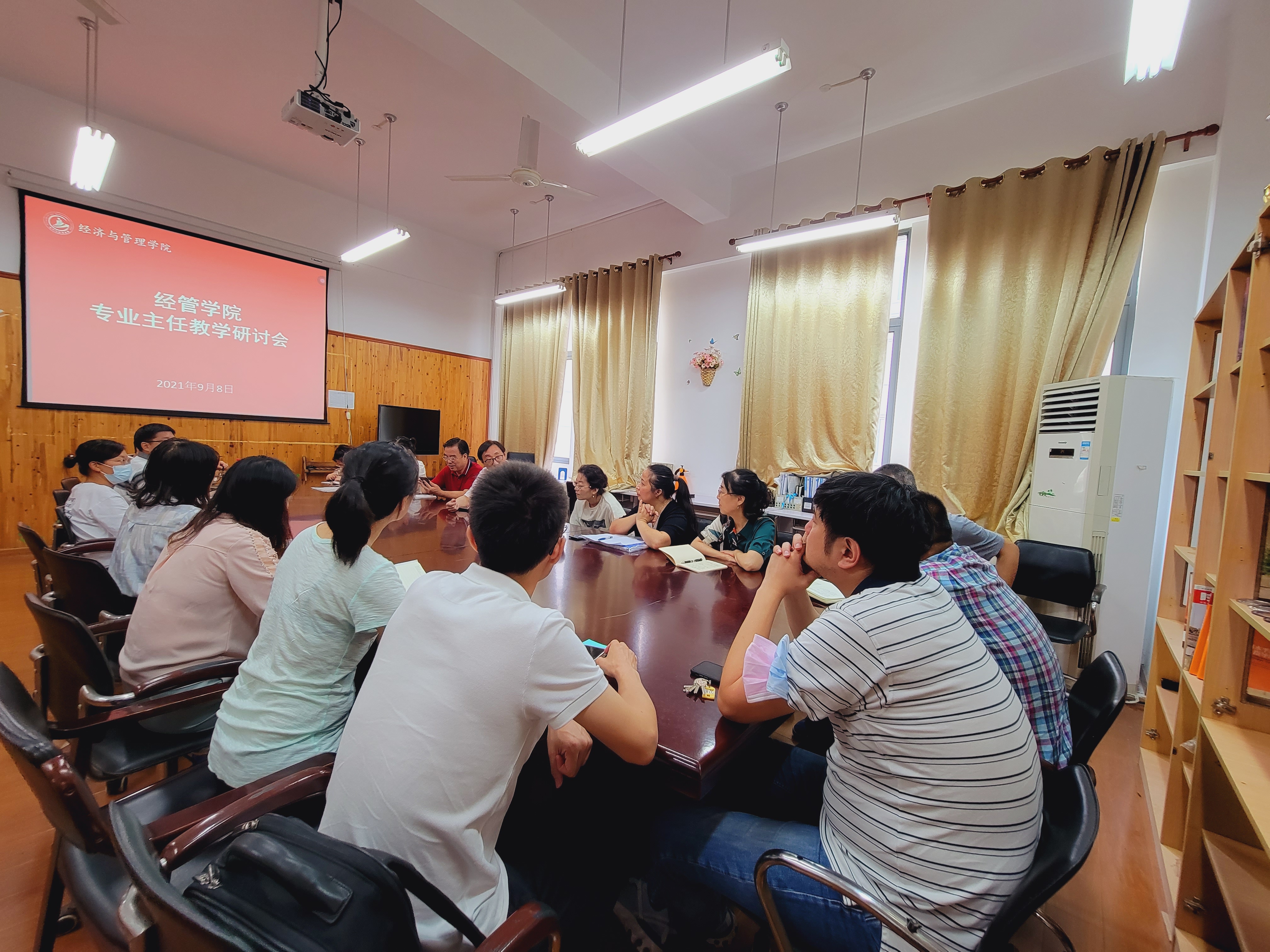 2021年9月8日上午8点30分,经济与管理学院在3号楼313会议室召开专业主任研讨会,讨论与起帆电缆签约仪式的细节落实以及教学改革和课程建设等一系列问题。学院院长张炳达教授、副院长王殿安教授、范海燕教授、党总支副书记杨慧老师、郭骏老师以及学院全体党员教师共同参会。会议由张院长主持。