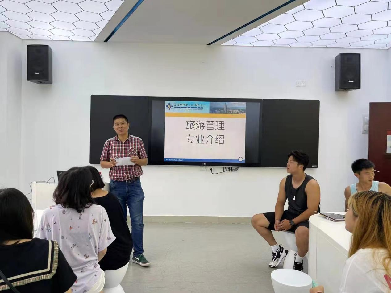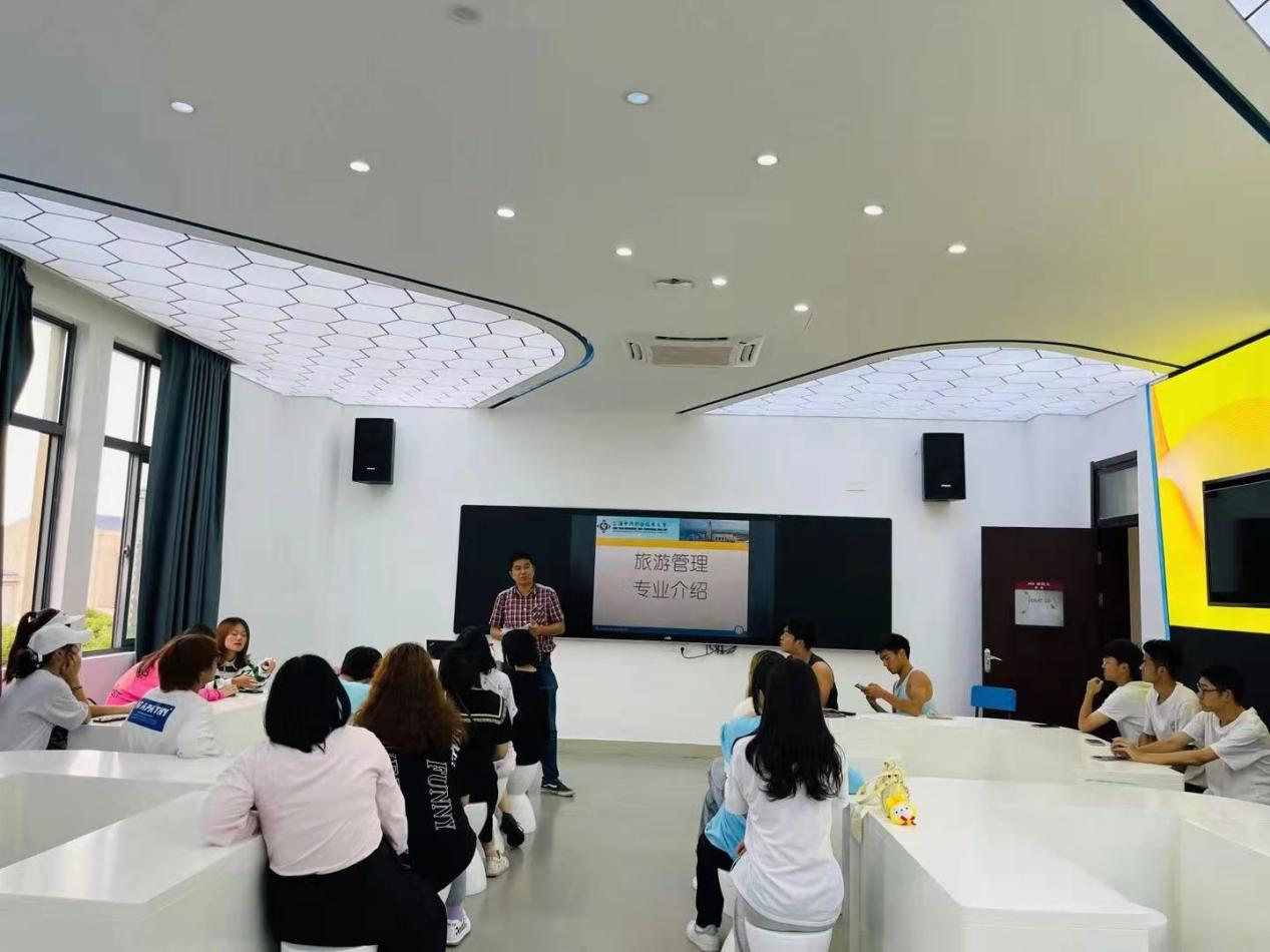 2021年9月16日中午11点40分,在3号楼402智慧多媒体教室进行了2021级旅游管理专业新生入学教育。
