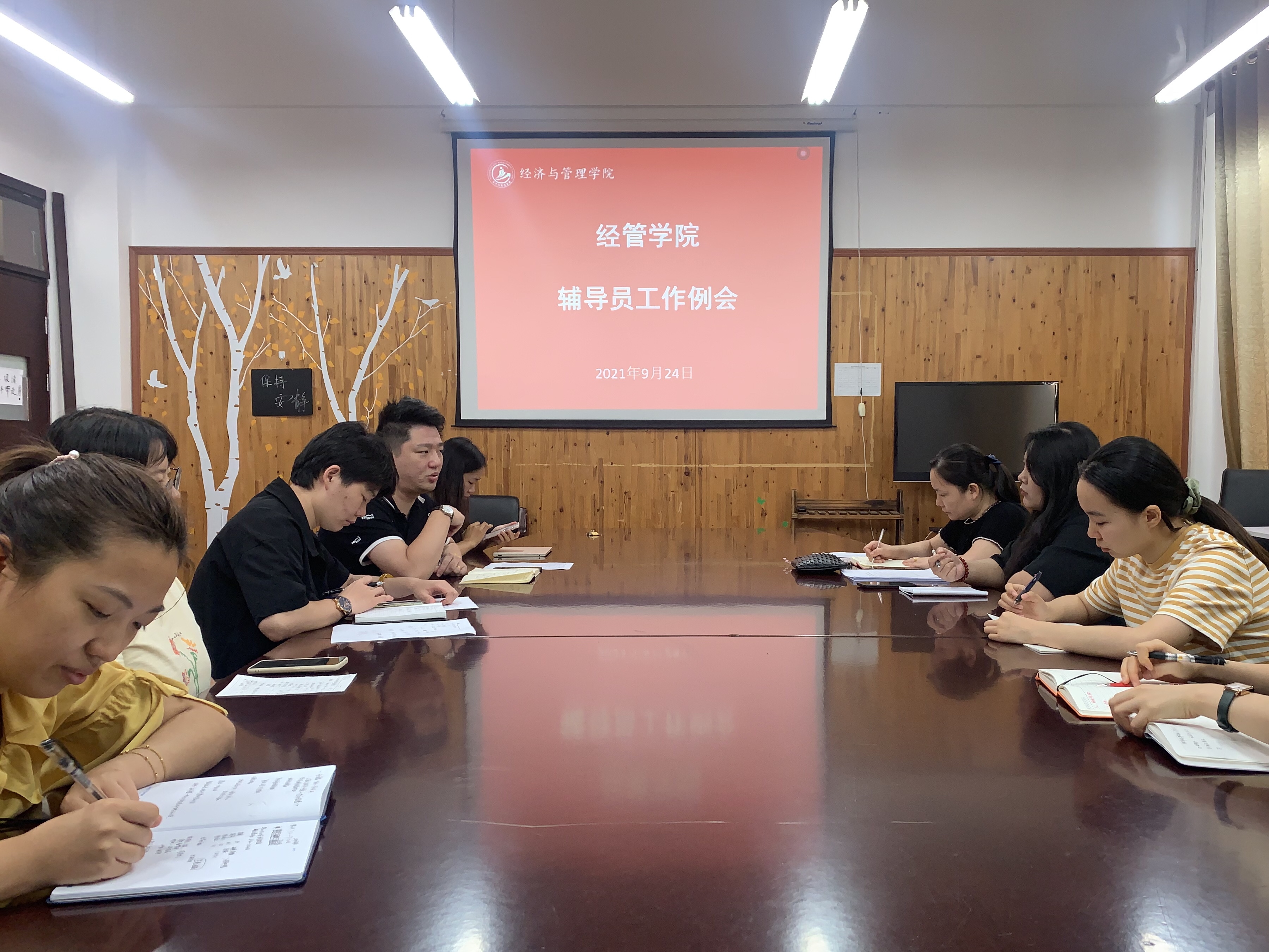 为切实做好学生管理工作,2021年9月24日中午13:50,经济与管理学院在教学楼3号楼313会议室召开本学期第二周辅导员工作例会,学院党支部副书记杨慧老师、郭骏老师和全体辅导员参会,会议由学院党支部副书记郭骏老师主持。