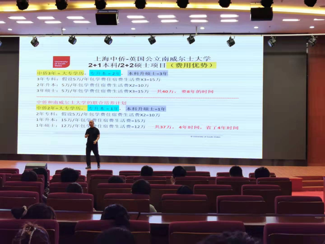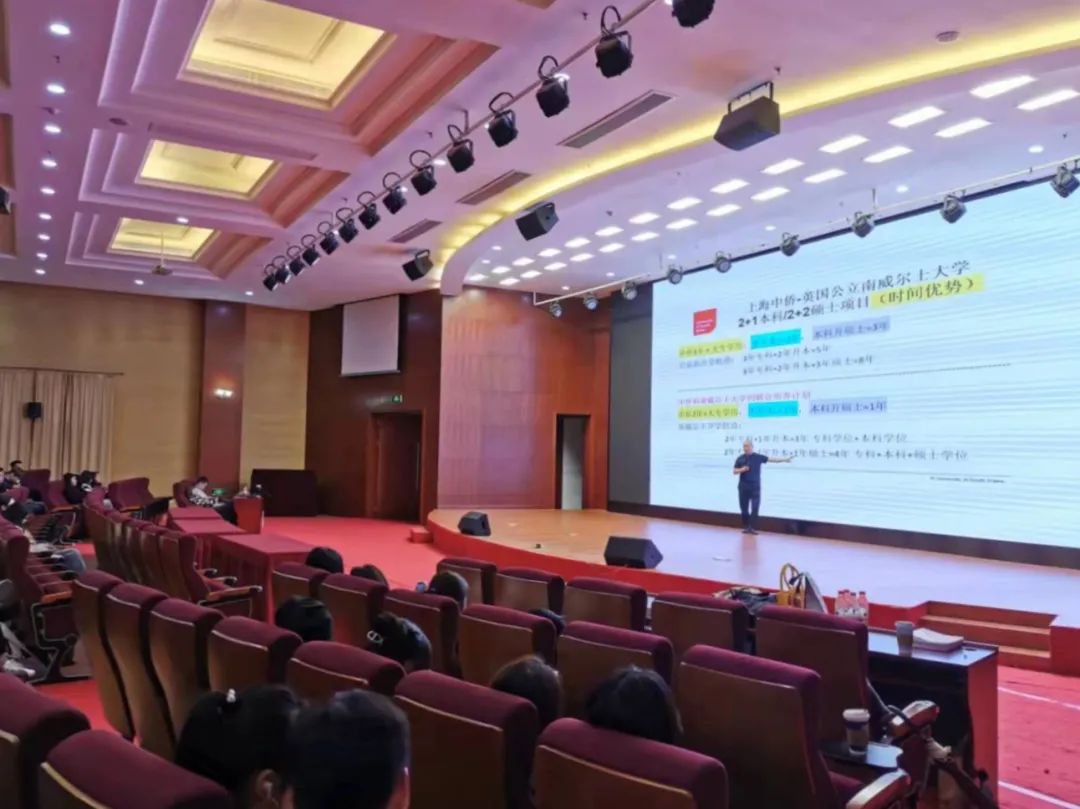 2021年10月20日18点,学校报告厅灯火通明,座无虚席。经济与管理学院召开大一和大二两个年级国际交流项目讲座,此次讲座由英国南威尔士大学驻上海办公室的Sam老师分五场为经管学院同学们进行赴英留学国际交流项目宣传。