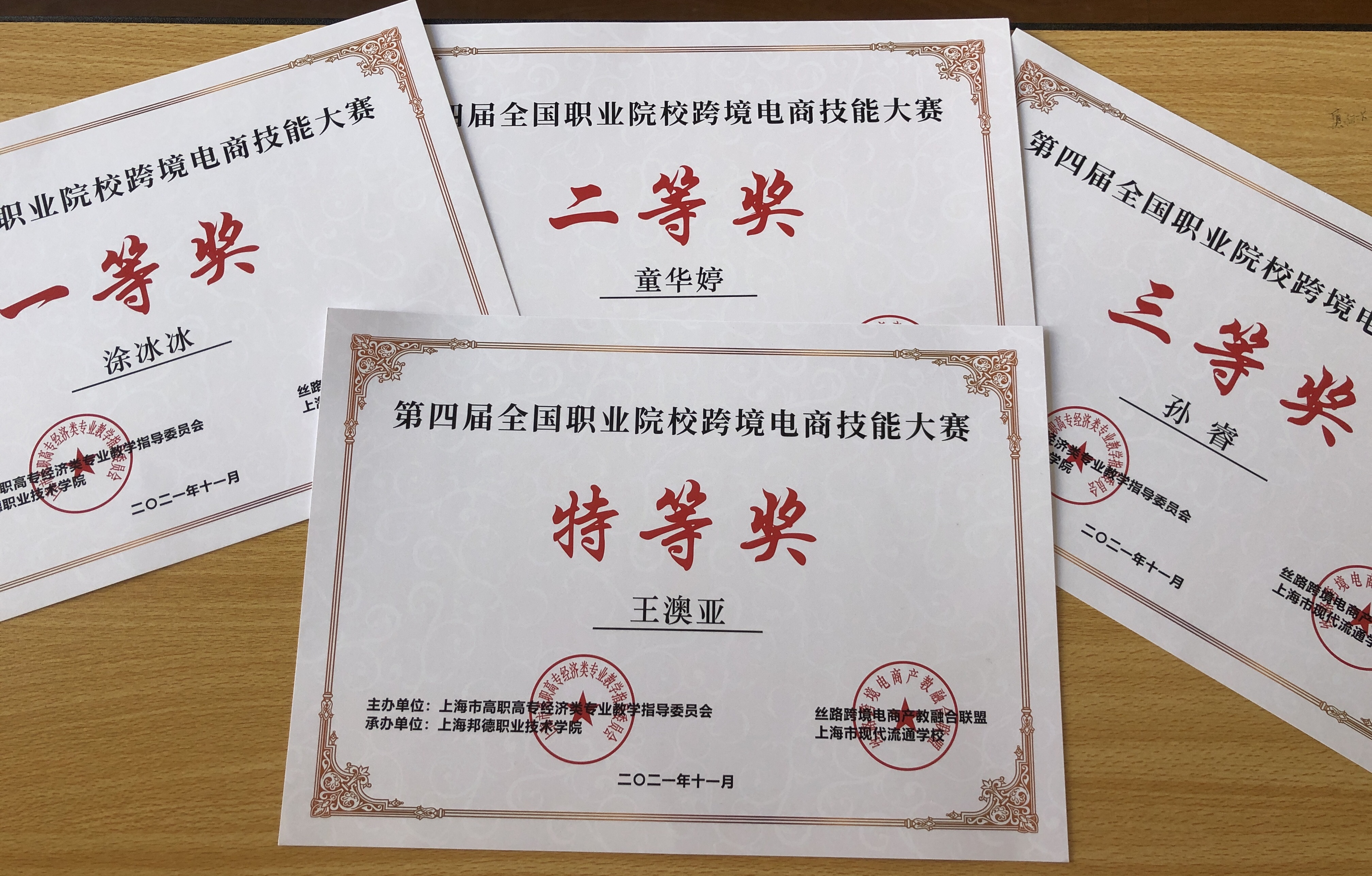 参加本届技能大赛的选手来自江苏、广东、浙江、河北、江西、河南、福建、宁夏、四川、安徽、湖北、海南、贵州、湖南、上海等15个省市共75所院校,参赛选手3321人。经过激烈角逐,21国际商务王澳亚同学勇夺特等奖,20国商涂冰冰同学获得一等奖,21国商童华婷同学获得二等奖,21国商孙睿同学获得三等奖。并分别获得了跨境电子商务师技能高级/中级等级证书。