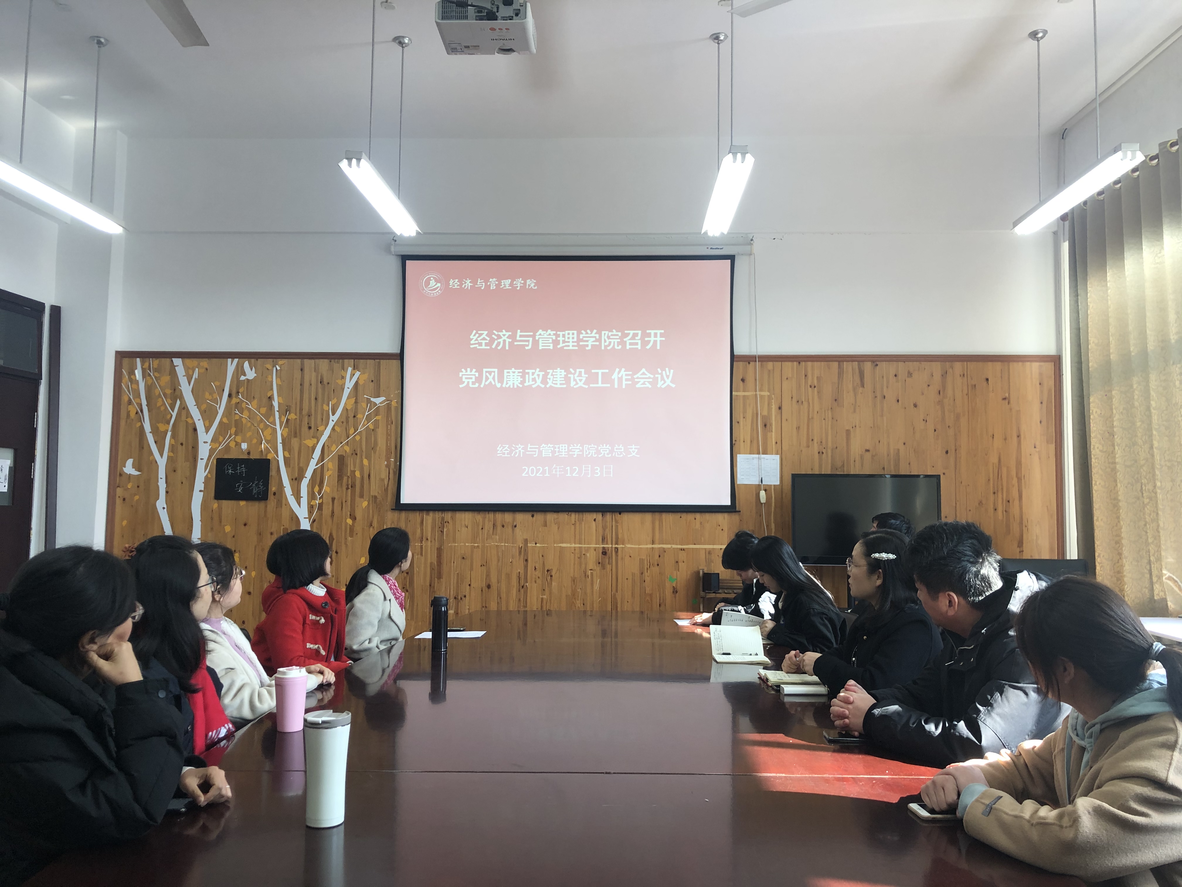 为进一步深入推进经济与管理学院党风廉政建设工作,2021年12月3日中午,经管学院在3号楼313会议室召开党风廉政建设工作专题会议。学院院长张炳达教授、副院长王殿安教授,党总支副书记郭骏老师,第一党支部书记邵静老师,总支委员和党员教师出席会议,本次会议由学院党总支副书记杨慧老师主持。