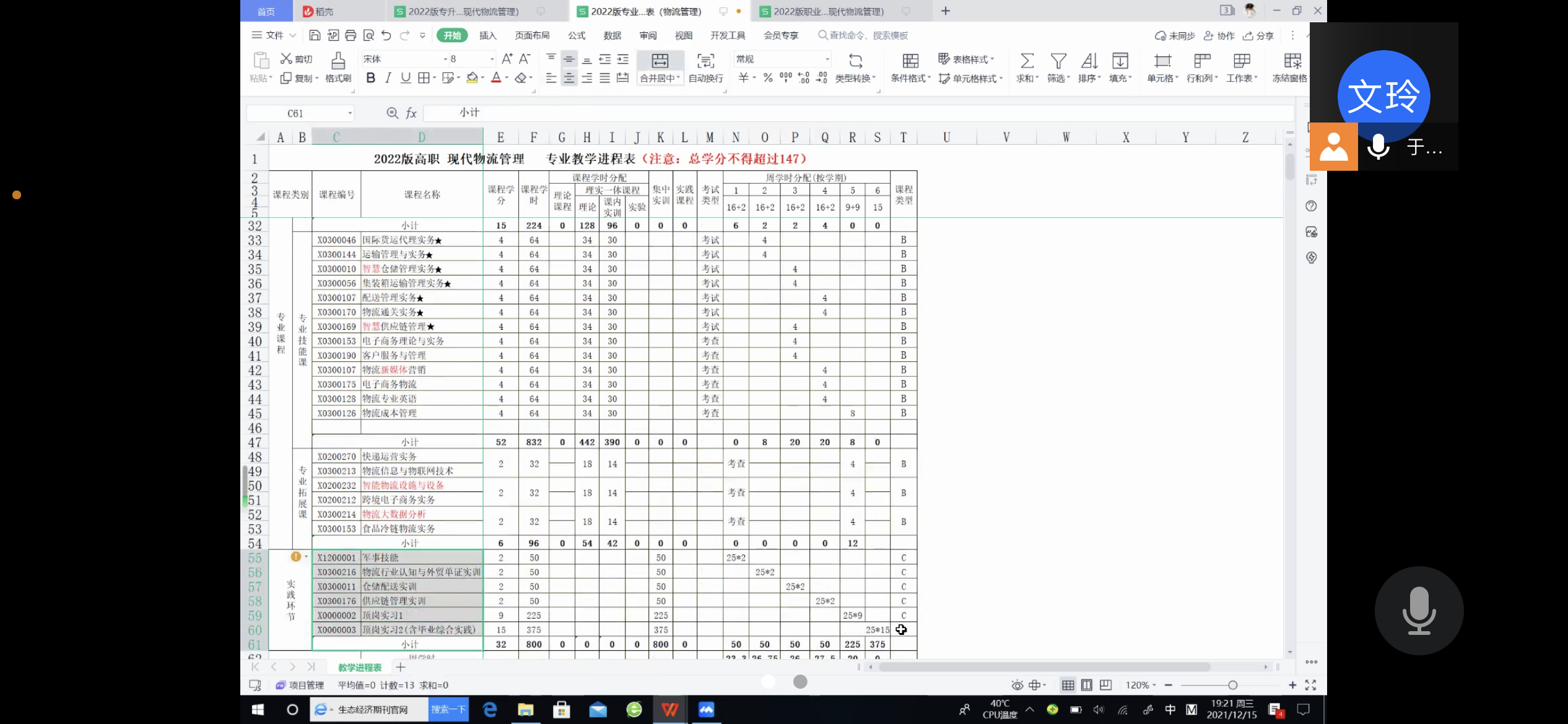 为推进专业内涵建设,完善课程体系,提高人才培养质量,2021年12月15日晚上7点,现代物流管理专业利用腾讯会议召开2022版人才培养方案修订研讨会。