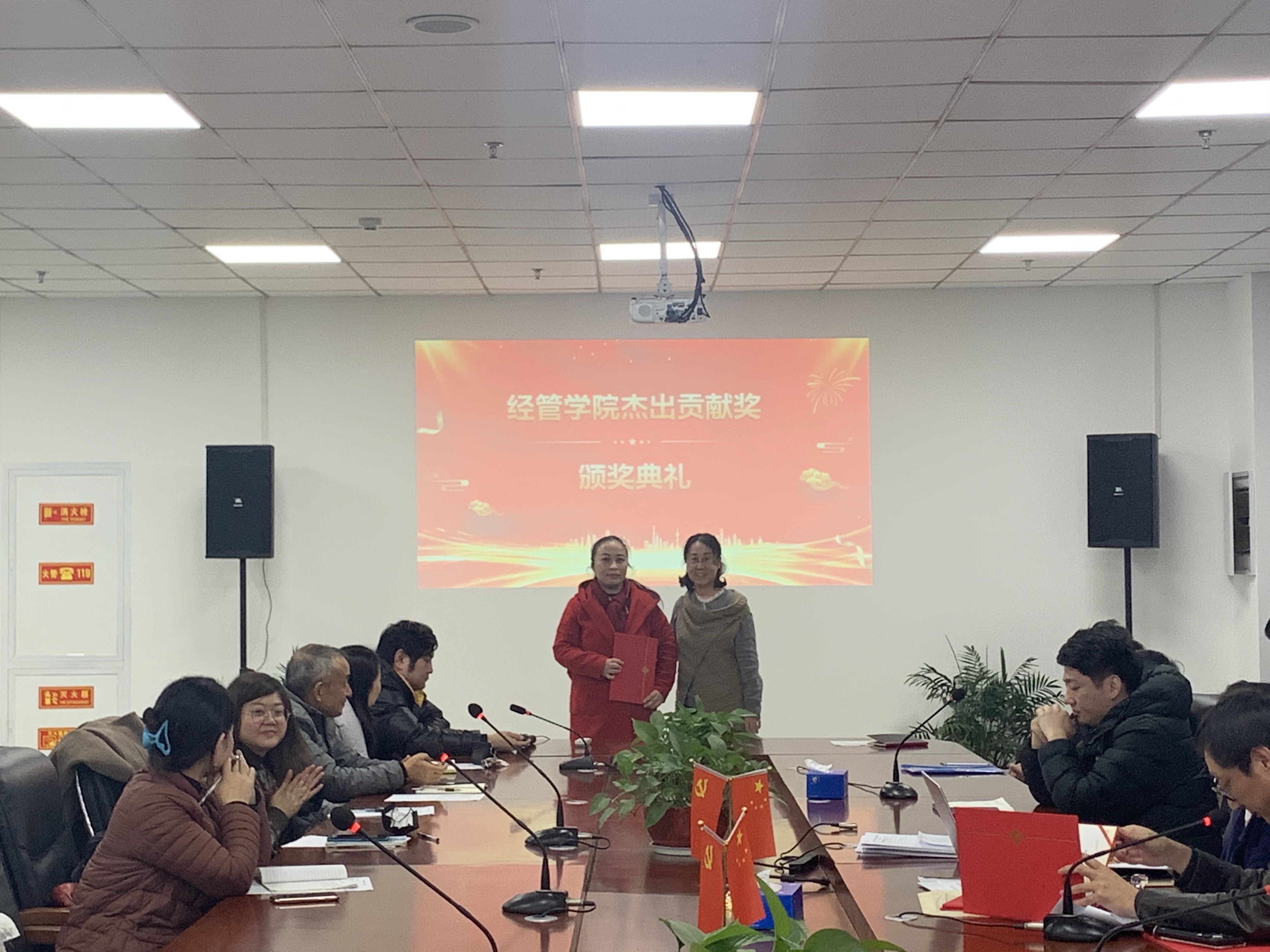 随后,张院长宣布任命耿昊裔老师为经济与管理学院院长助理,同时宣布耿昊裔、俞春英、钟小平、刘京、王锡念、邵静六位教师为2021年度校优秀教师,宣布“于文玲、耿昊裔、黄侃梅、俞春英、周星、陈玲玲”六位教师获得2021年经济与管理学院杰出贡献奖,参与人员对获奖教师表示祝贺。