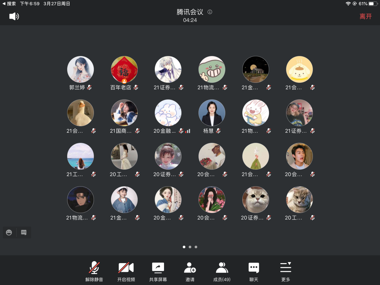 为全面了解学院线上教学情况,改进教学方式方法,提升线上教学质量,2022年3月27日晚7时,学院利用线上腾讯会议形式,召开了学生代表座谈会,重点听取学生对前期线上教学的意见和建议,总结线上教学经验和不足。学院党总支书记杨慧老师,党总支副书记郭骏老师,学院分团委书记郭兰婷老师,以及50多名学生代表参加了座谈会。教学副院长王殿安教授主持会议。