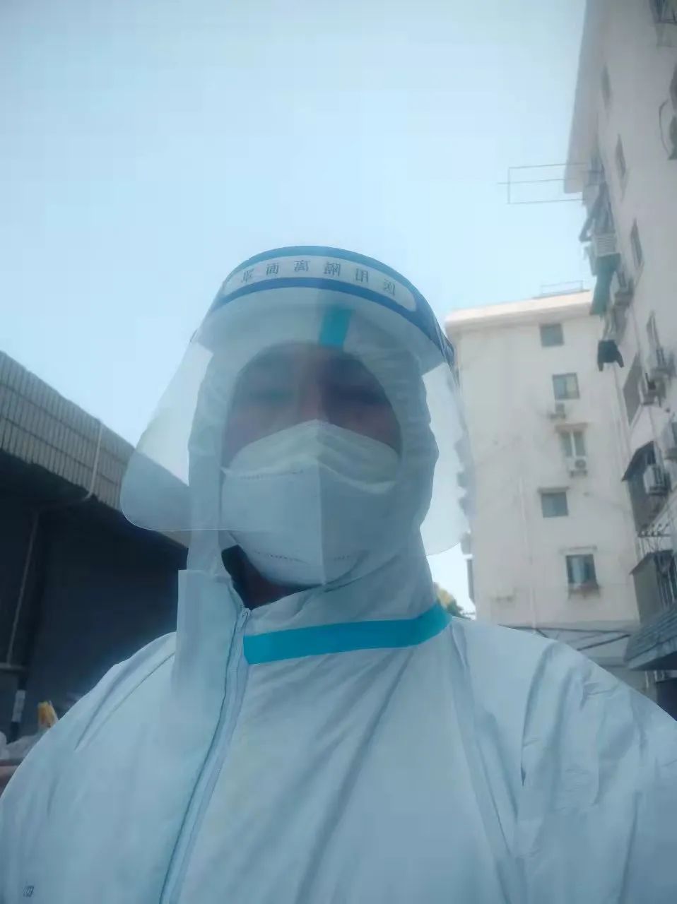 滕建华老师在浦东新区上钢街道耀一居委社区,参与社区核酸检测,抗疫物资运输派发工作,用实际行动帮助社区居民抗击疫情。