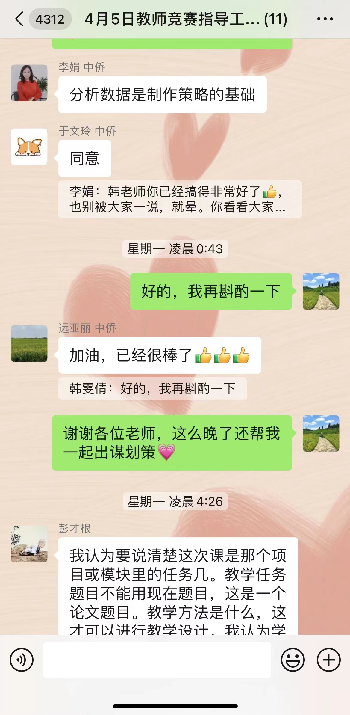 参赛团队在耿昊裔老师的倾力协助下,认真钻研比赛要求,多次组织研讨,开展头脑风暴,反复打磨课程实施报告,精心设计参赛课程单元教学思路。同时学院领导高度重视,由张院长牵头,彭才根教授、李娟、于文玲、远亚丽、于建云、高峰等多位教师组成竞赛指导小组,就作品主题提炼、教学设计优化、教学内容构建等方面进行指导,帮助参赛团队进一步理清思路,明确方向。