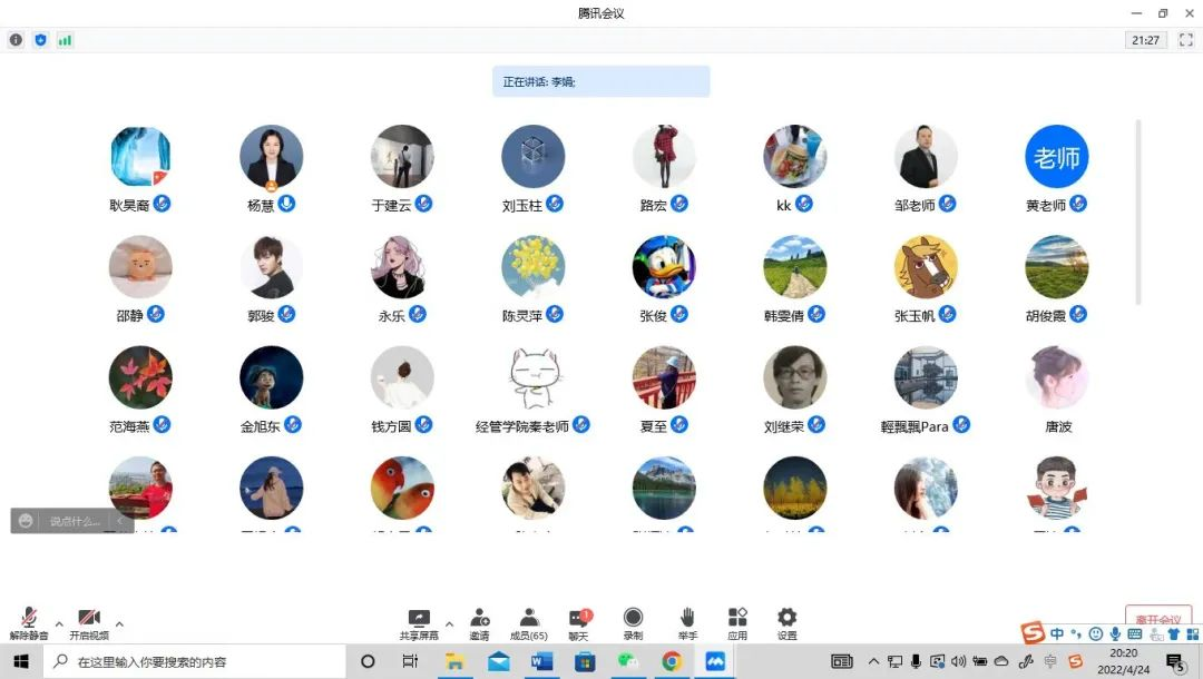 2022年4月24日,经管学院通过腾讯会议召开全院大会。学院领导张院长、杨慧书记、王殿安和范海燕副院长、郭骏副书记,学院全体教师和辅导员参加大会。会议由杨慧书记主持。