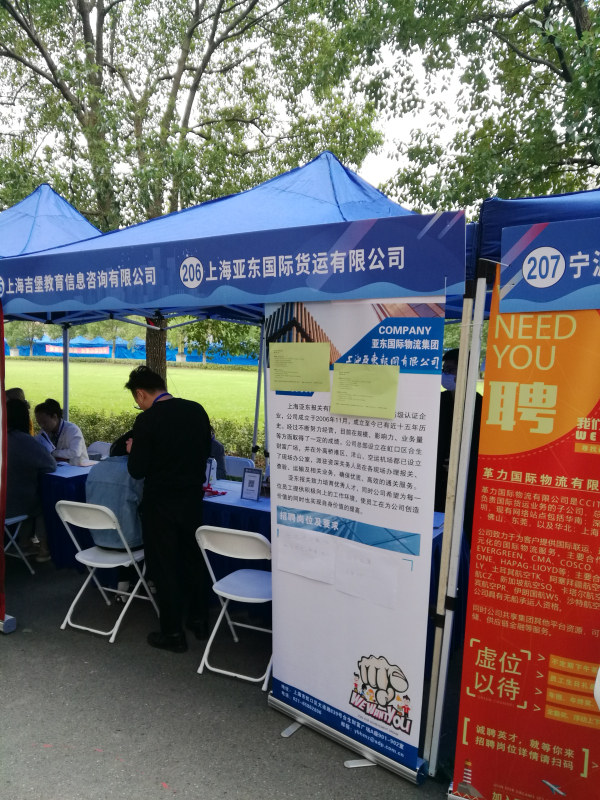 以下是2021年深秋,多家上海、南京、宁波等地的报关货代企业进入中侨校园,设摊招聘所需岗位的职员(含见习生)的场景。这些企业大多数由我校的就业办直接联系,是与经管学院的关务、国商等专业有数年密切合作的用人单位,其中不乏一些中侨的往届毕业生在里面已历练多年,成长为部门经理的大中型用人企业。