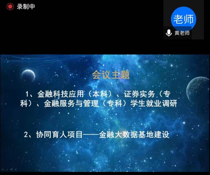 会议由经济与管理学院金融科技应用专业黄老师主持。会议围绕金融科技应用(本科)、证券实务(专科)、金融服务与管理(专科)学生就业调研和协同育人项目——金融大数据基地建设展开,为专业人才培养目标的调整提供有效建议。希望后续能和希施玛公司在人才培养方案、师资队伍建设、课程建设、就业实习等方面进一步深入开展产研教融合,提升专业人才培养质量,更好为社会输送专业的优质人才。