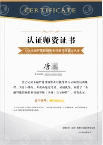 最后老师们在完成培训课程并考核合格后,获得由金智东博(北京)教育科技股份有限公司颁发“1+X”金融智能投顾职业技能等级能力认证师资证书。 此次师资培训会取得圆满成功。
