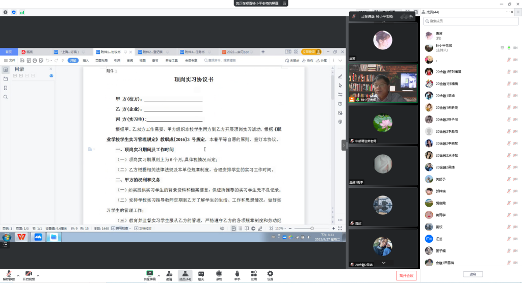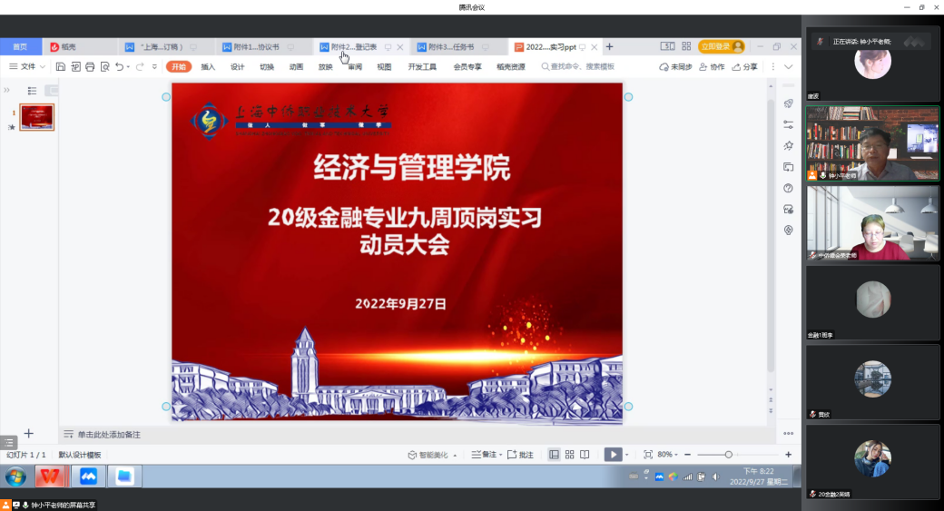 为进一步做好2020级毕业生们的实习工作,引导学生树立正确的实习、就业工作观念。2022年9月27日,经济与管理学院金融服务与管理专业根据疫情防控要求,通过腾讯会议召开20级金融服务与管理专业实习动员大会,会议由专业主任钟小平老师主持,陈锐、谭会荣、江芸、黄欣、唐波、胡俊霞、王军、陈玲玲等九位指导老师,以及20级金融服务与管理专业学生参加了此次会议。